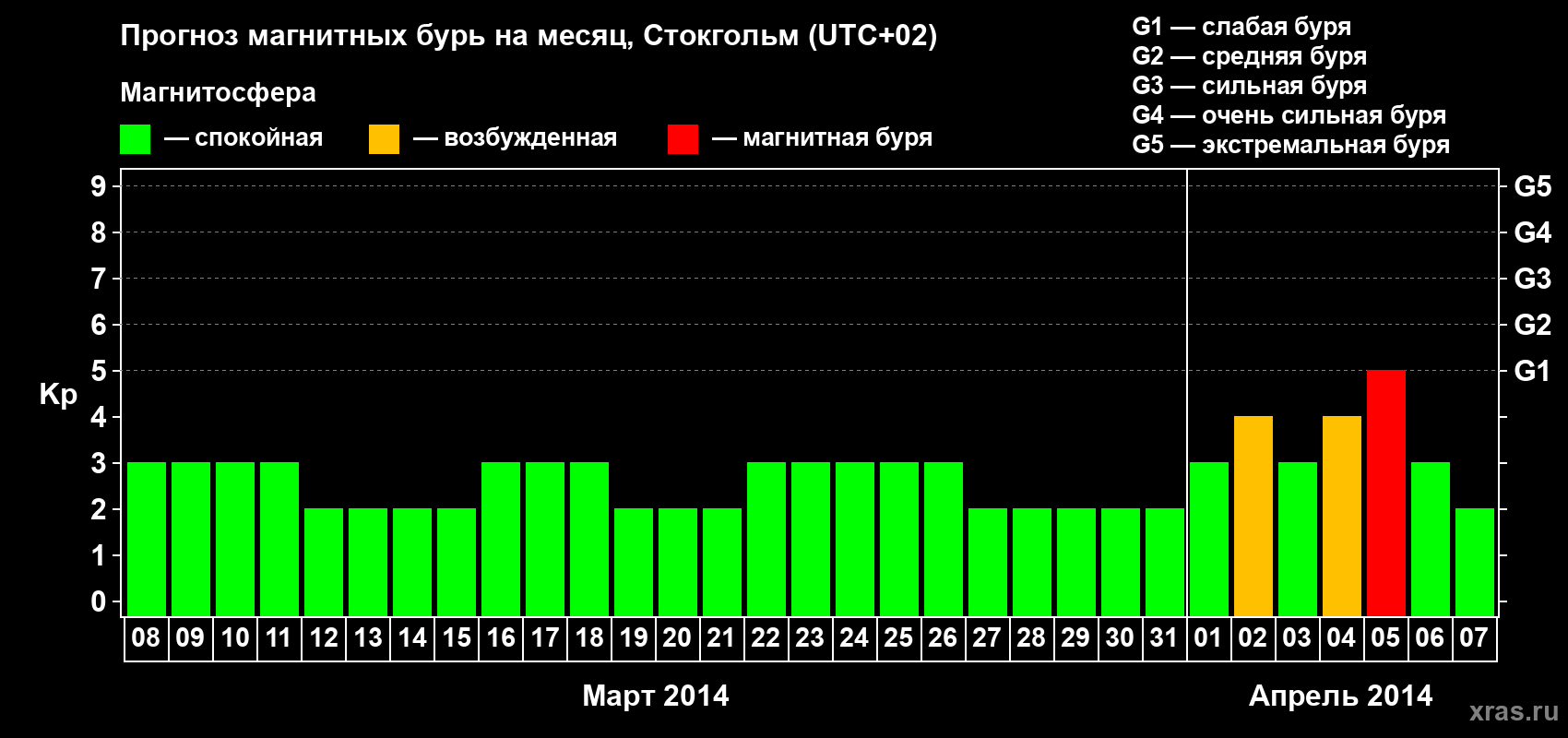 Прогноз магнитных бурь в Стокгольме — 8 марта 2014 года