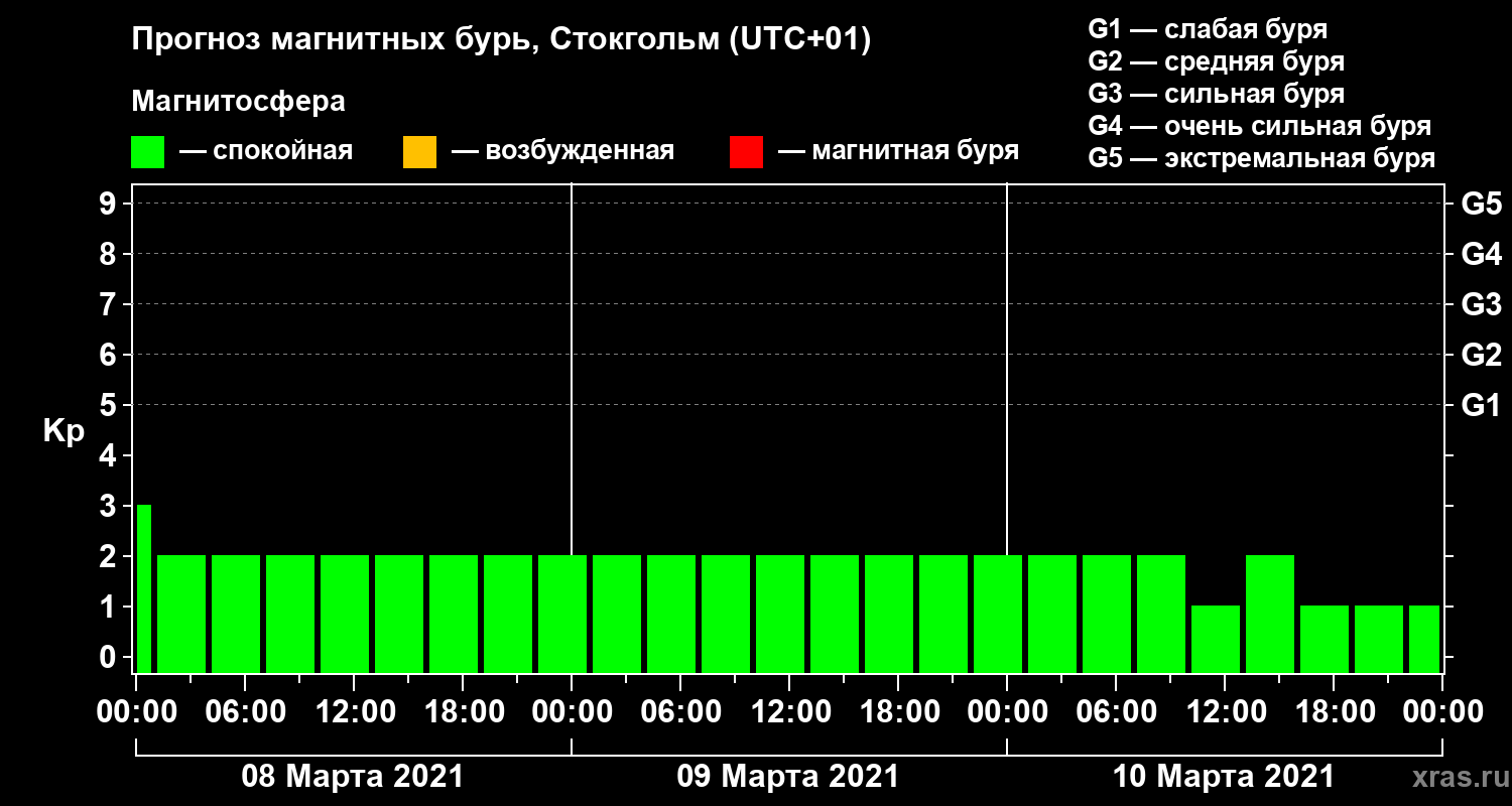 Прогноз магнитных бурь в Стокгольме — 8 марта 2021 года