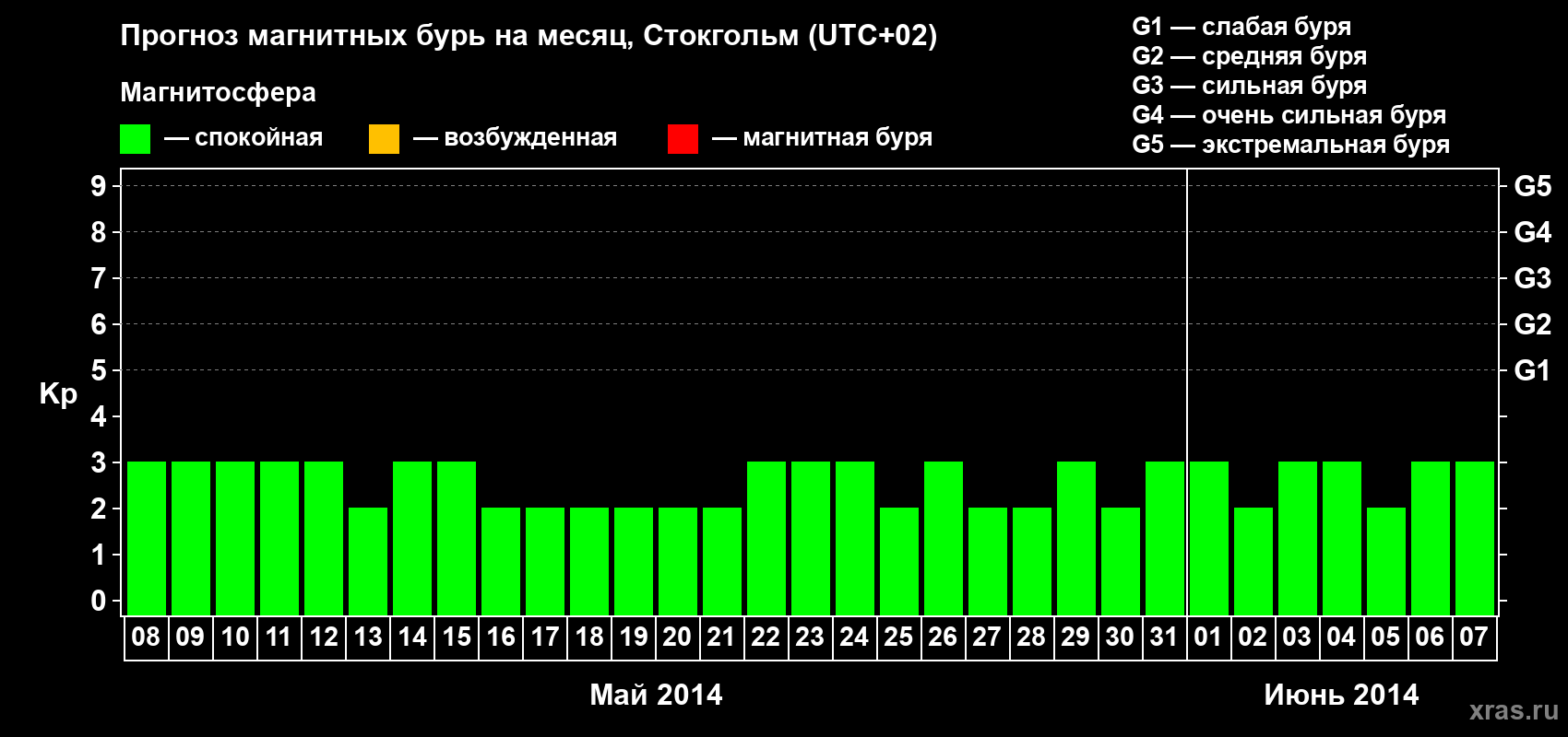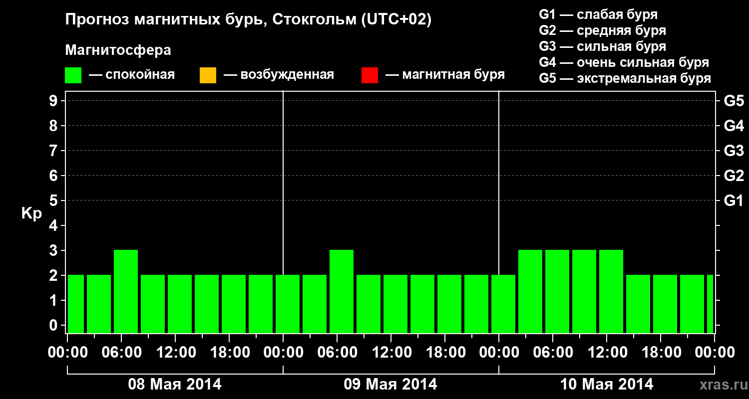 Прогноз магнитных бурь в Стокгольме — 8 мая 2014 года