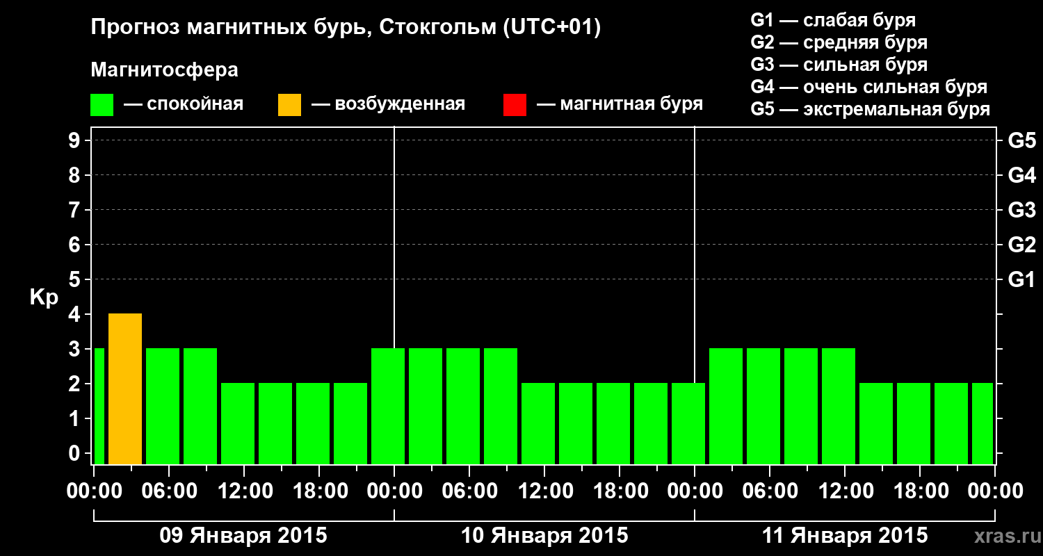 Прогноз магнитных бурь в Стокгольме — 9 января 2015 года