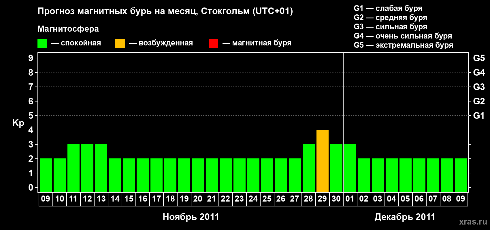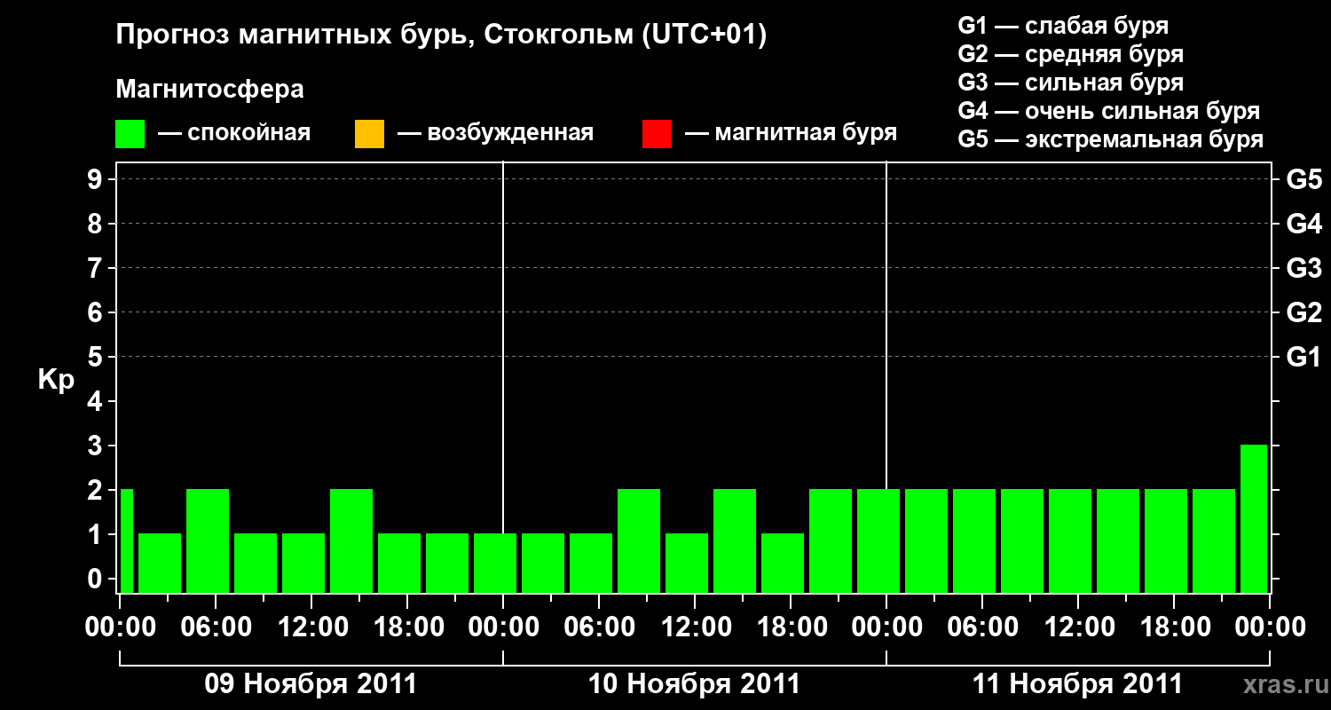 Прогноз магнитных бурь в Стокгольме — 9 ноября 2011 года