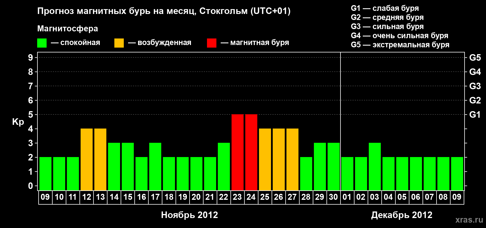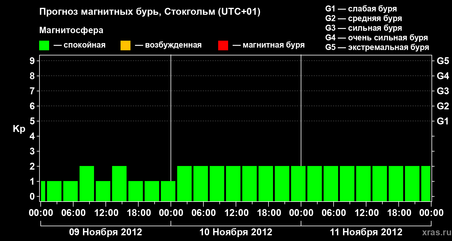 Прогноз магнитных бурь в Стокгольме — 9 ноября 2012 года