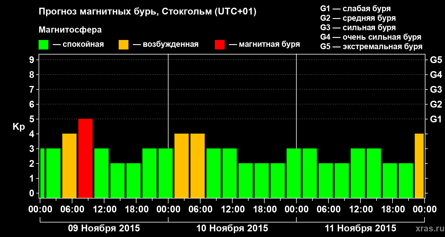 Прогноз магнитных бурь в Стокгольме — 9 ноября 2015 года