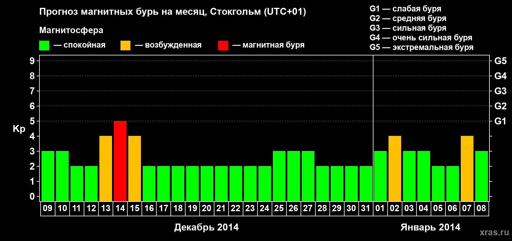 Прогноз магнитных бурь в Стокгольме — 9 декабря 2013 года