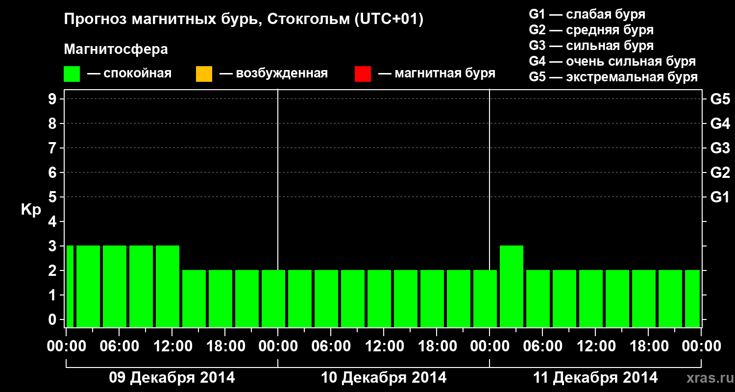 Прогноз магнитных бурь в Стокгольме — 9 декабря 2014 года