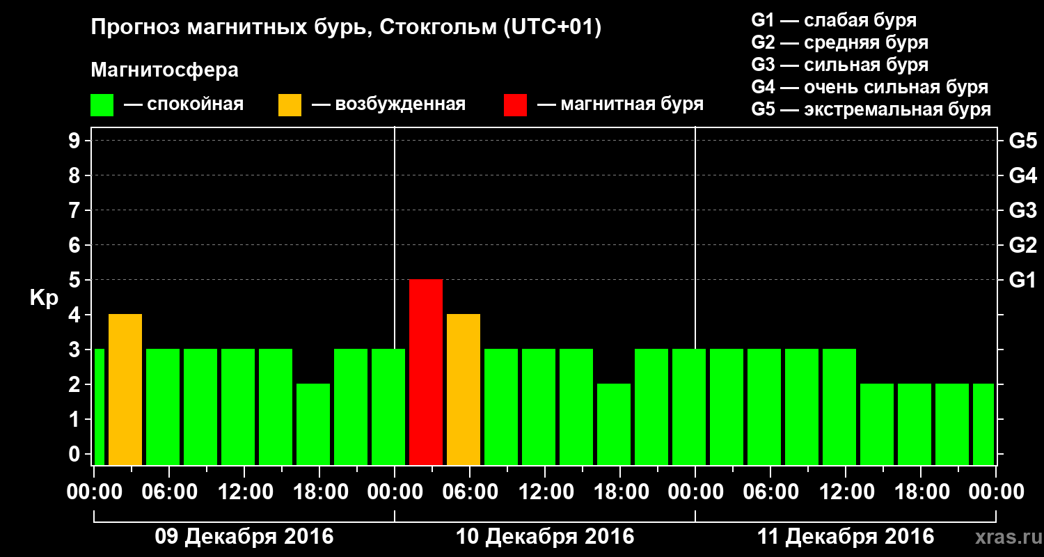 Прогноз магнитных бурь в Стокгольме — 9 декабря 2016 года