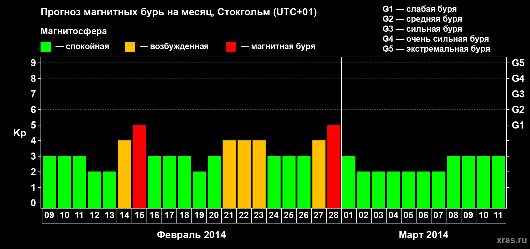 Прогноз магнитных бурь в Стокгольме — 9 февраля 2014 года