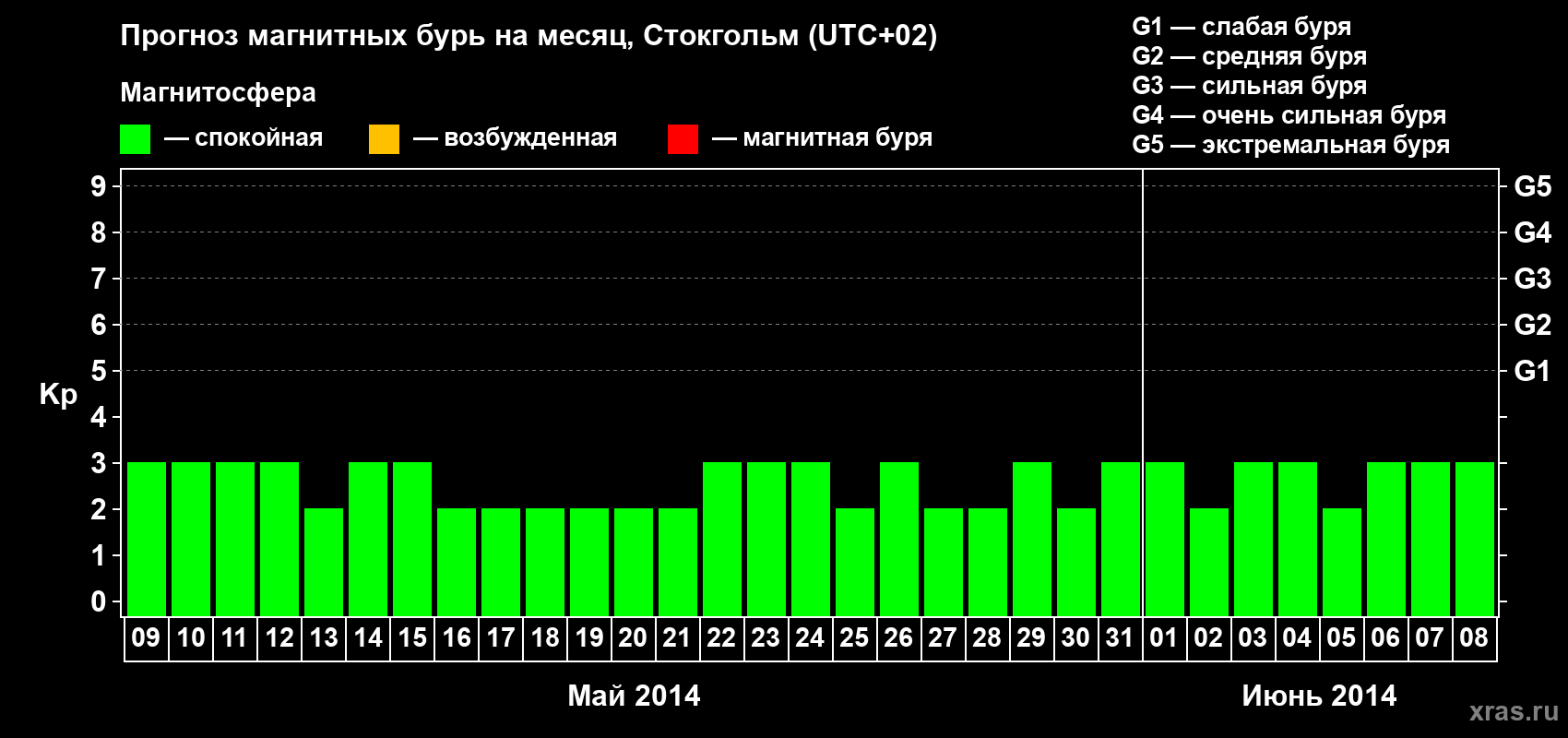 Прогноз магнитных бурь в Стокгольме — 9 мая 2014 года