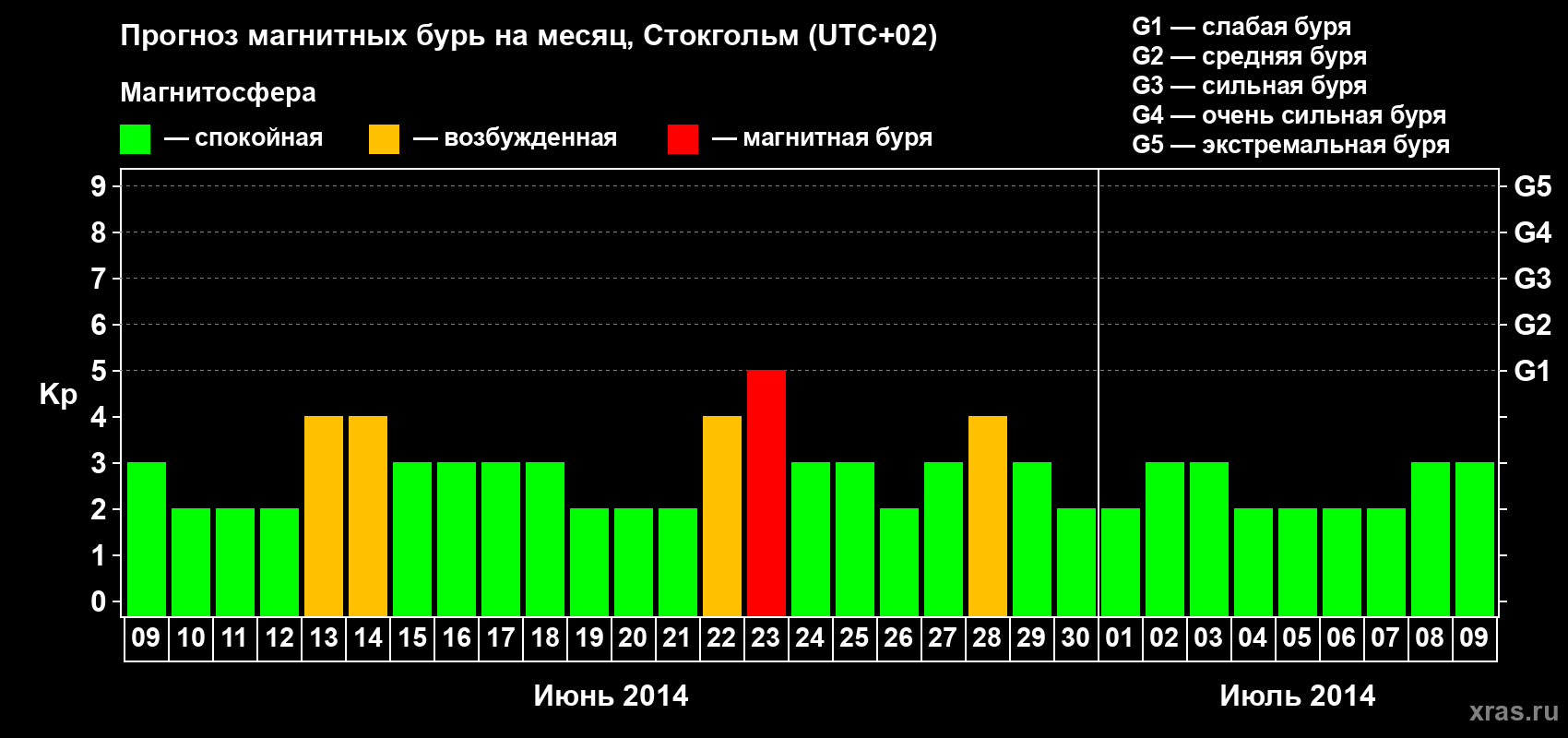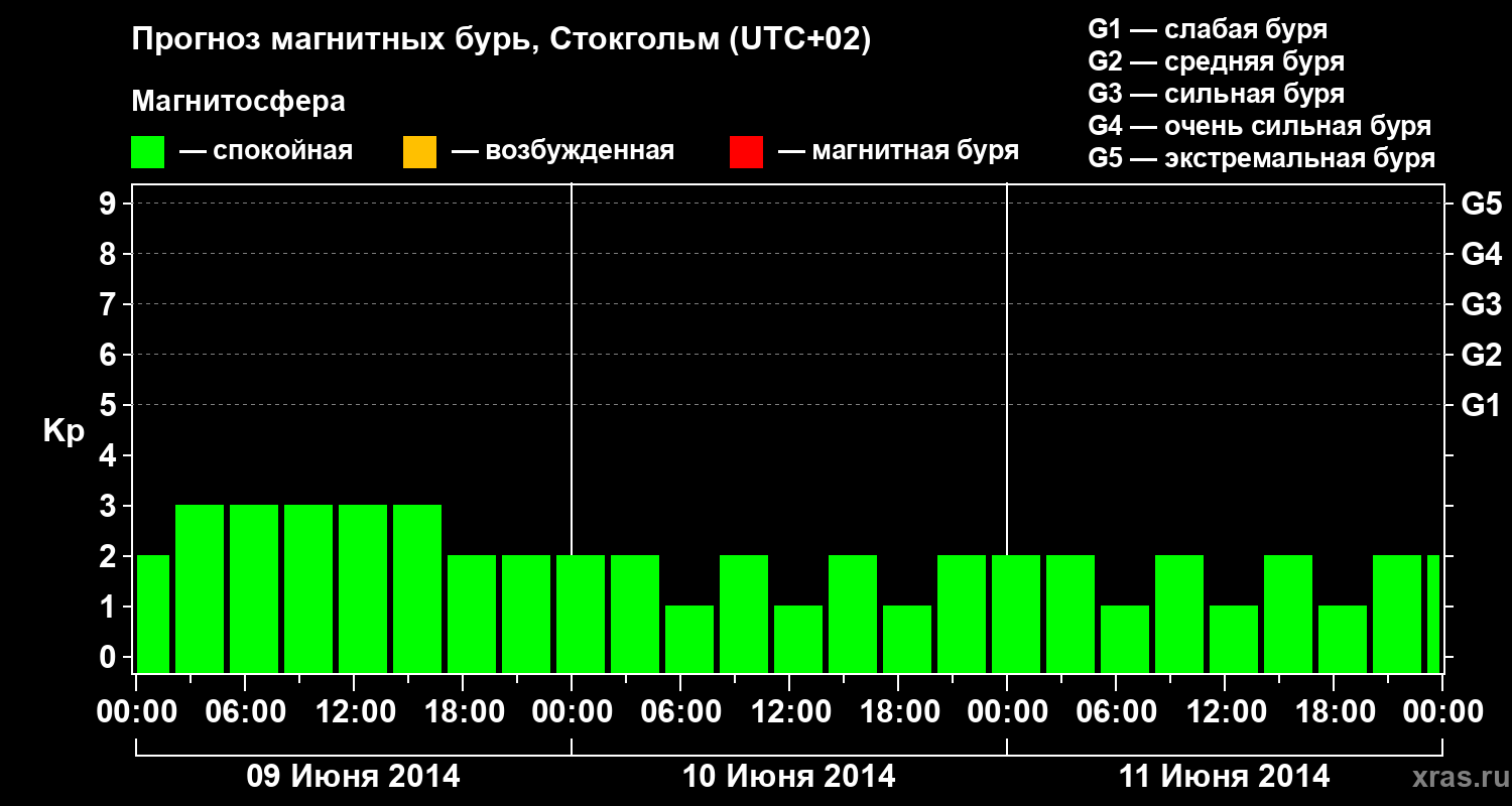Прогноз магнитных бурь в Стокгольме — 9 июня 2014 года