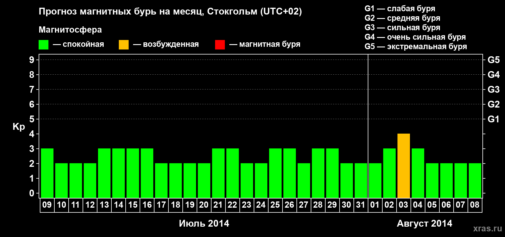 Прогноз магнитных бурь в Стокгольме — 9 июля 2014 года