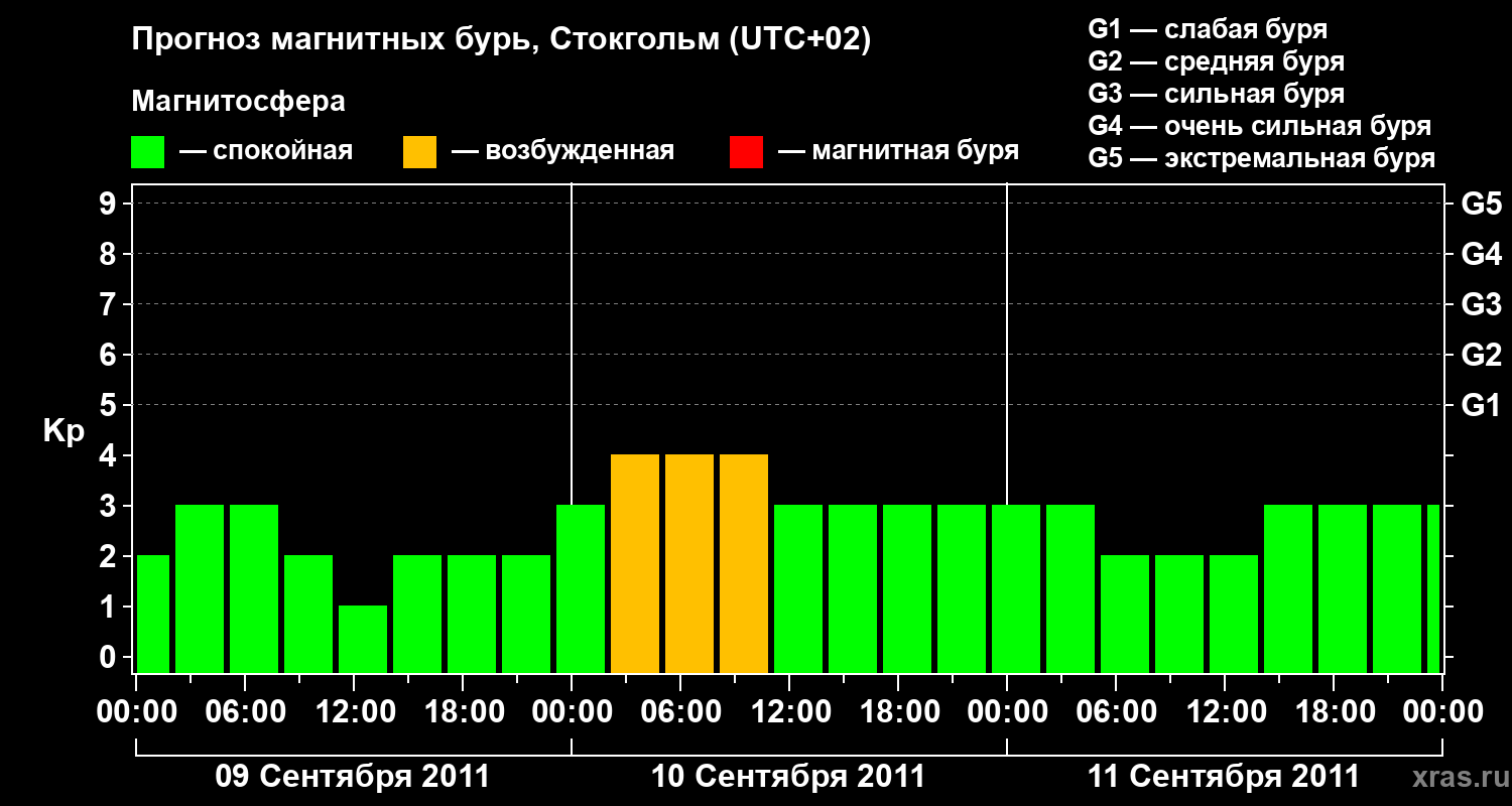 Прогноз магнитных бурь в Стокгольме — 9 сентября 2011 года