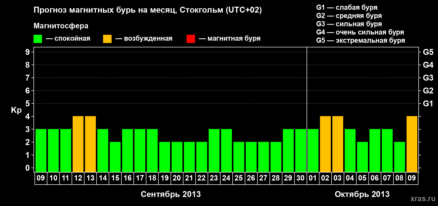 Прогноз магнитных бурь в Стокгольме — 9 сентября 2013 года