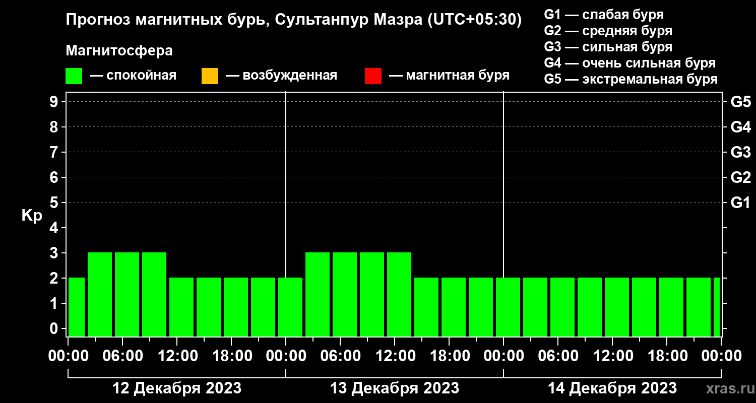 Прогноз магнитных бурь в Сультанпур Мазре на 12 декабря 2023 года