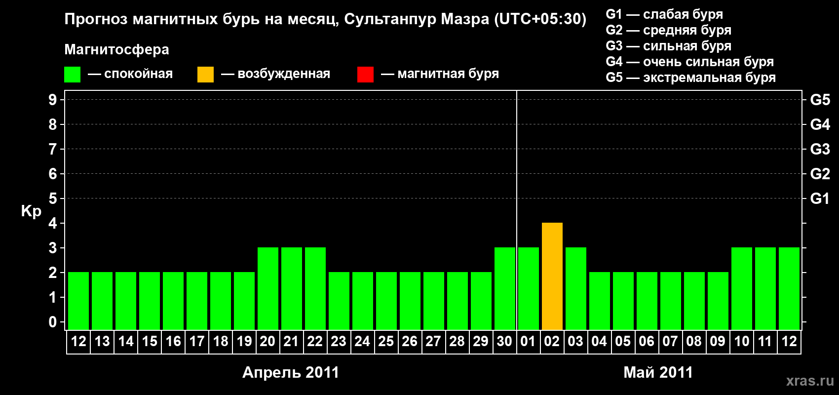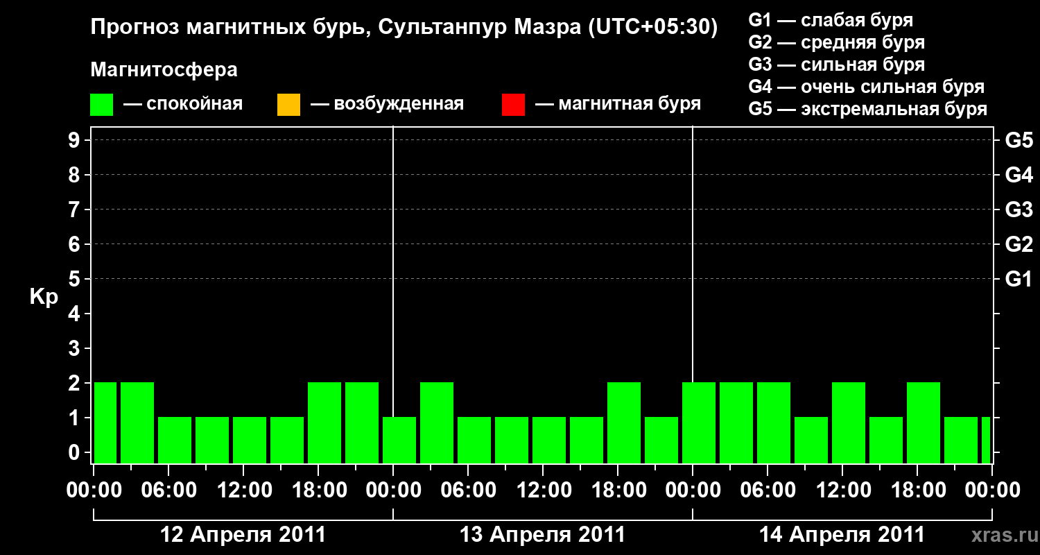 Прогноз магнитных бурь в Сультанпур Мазре — 12 апреля 2011 года