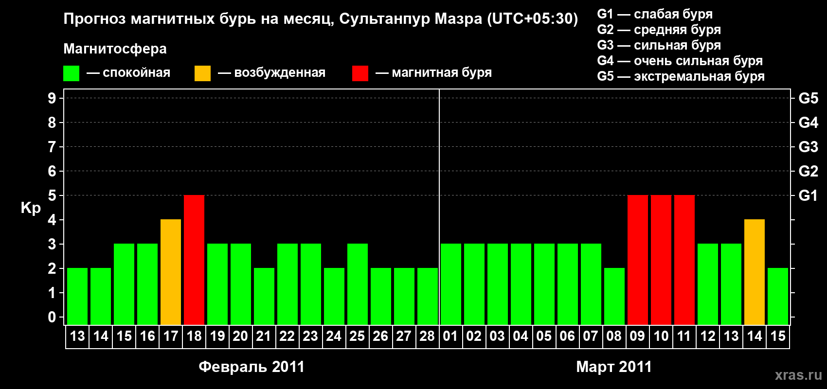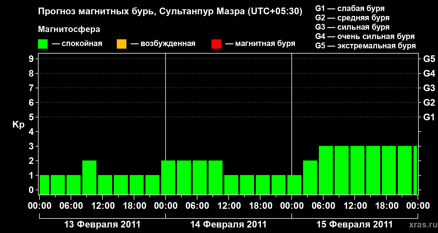 Прогноз магнитных бурь в Сультанпур Мазре — 13 февраля 2011 года