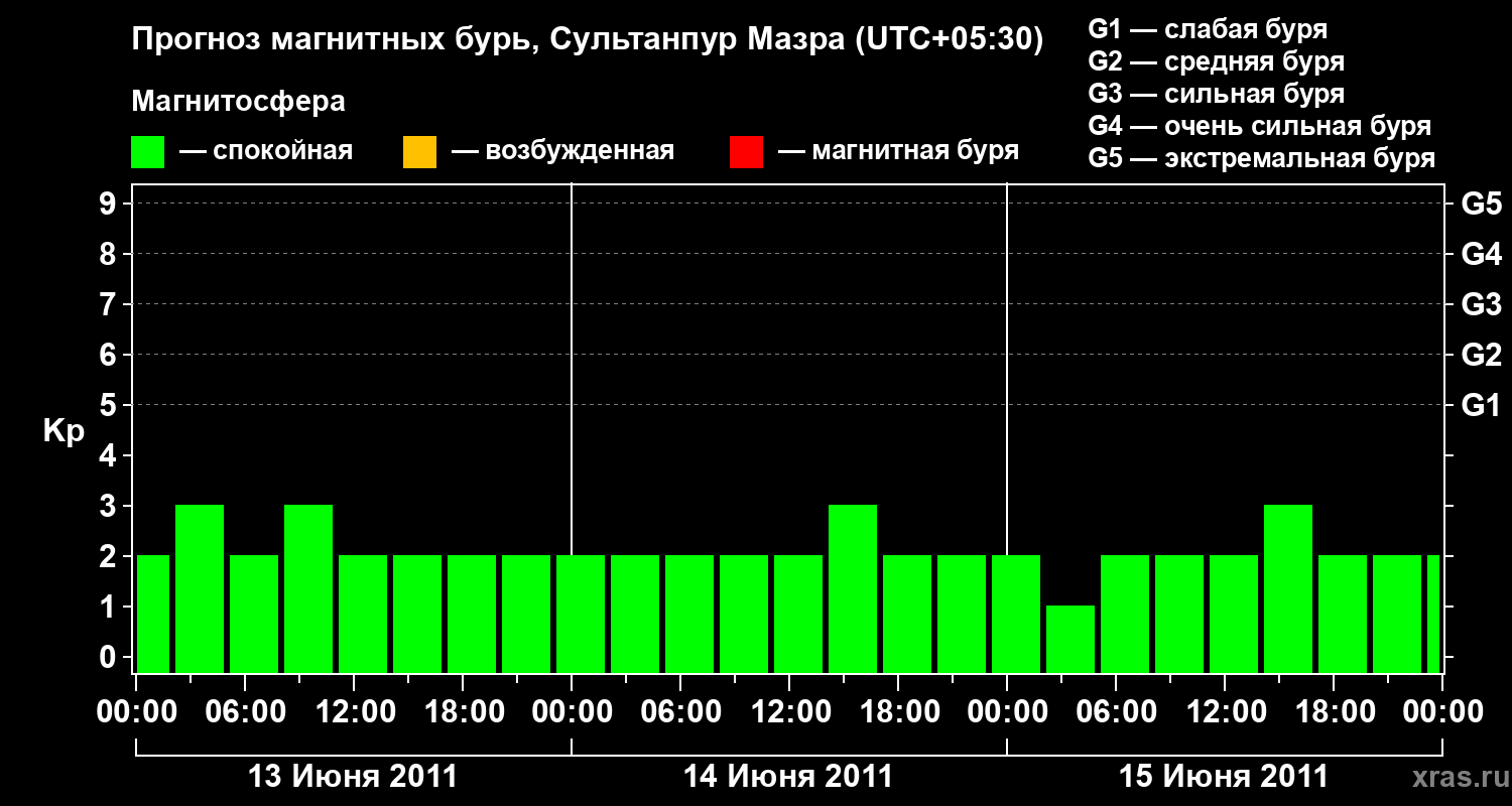 Прогноз магнитных бурь в Сультанпур Мазре — 13 июня 2011 года