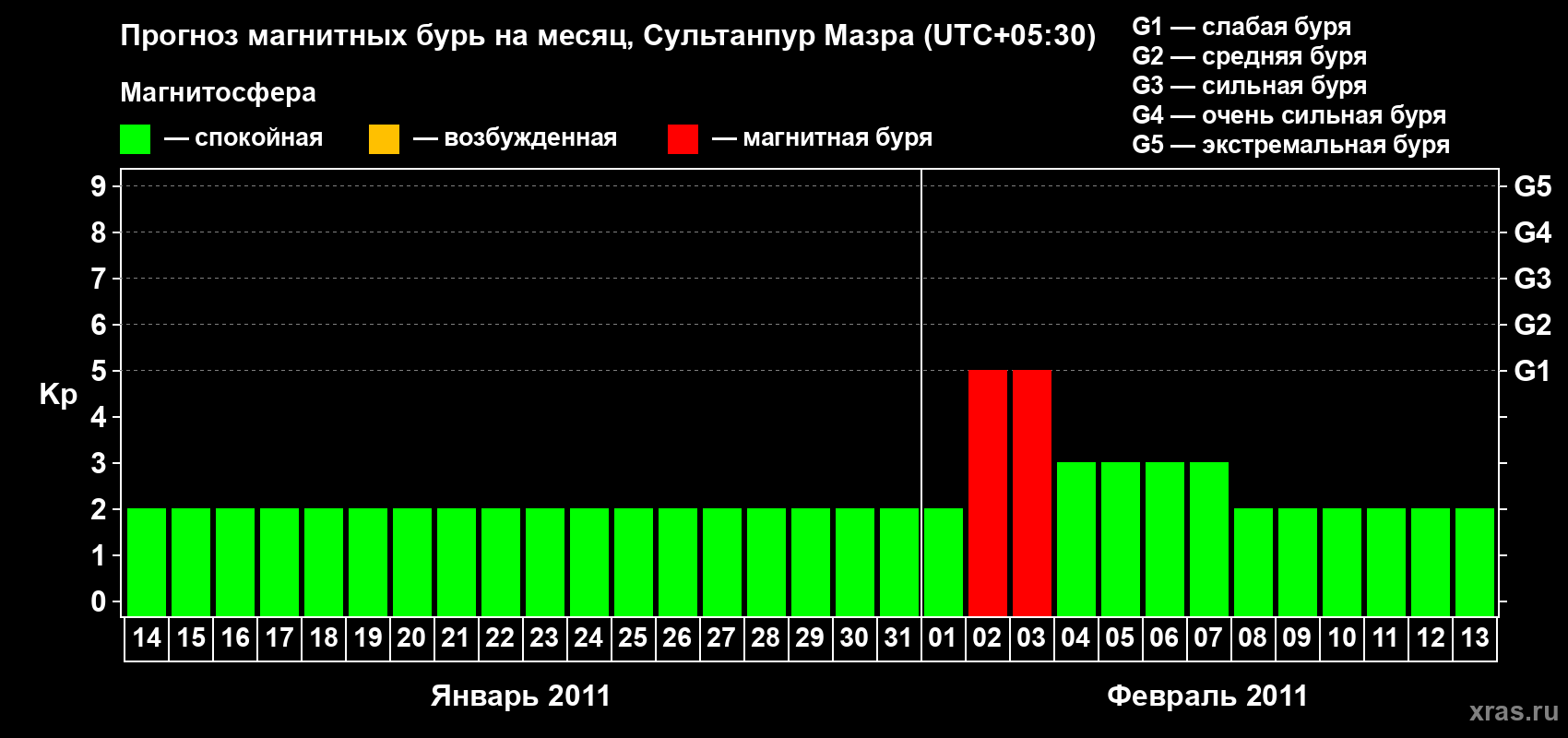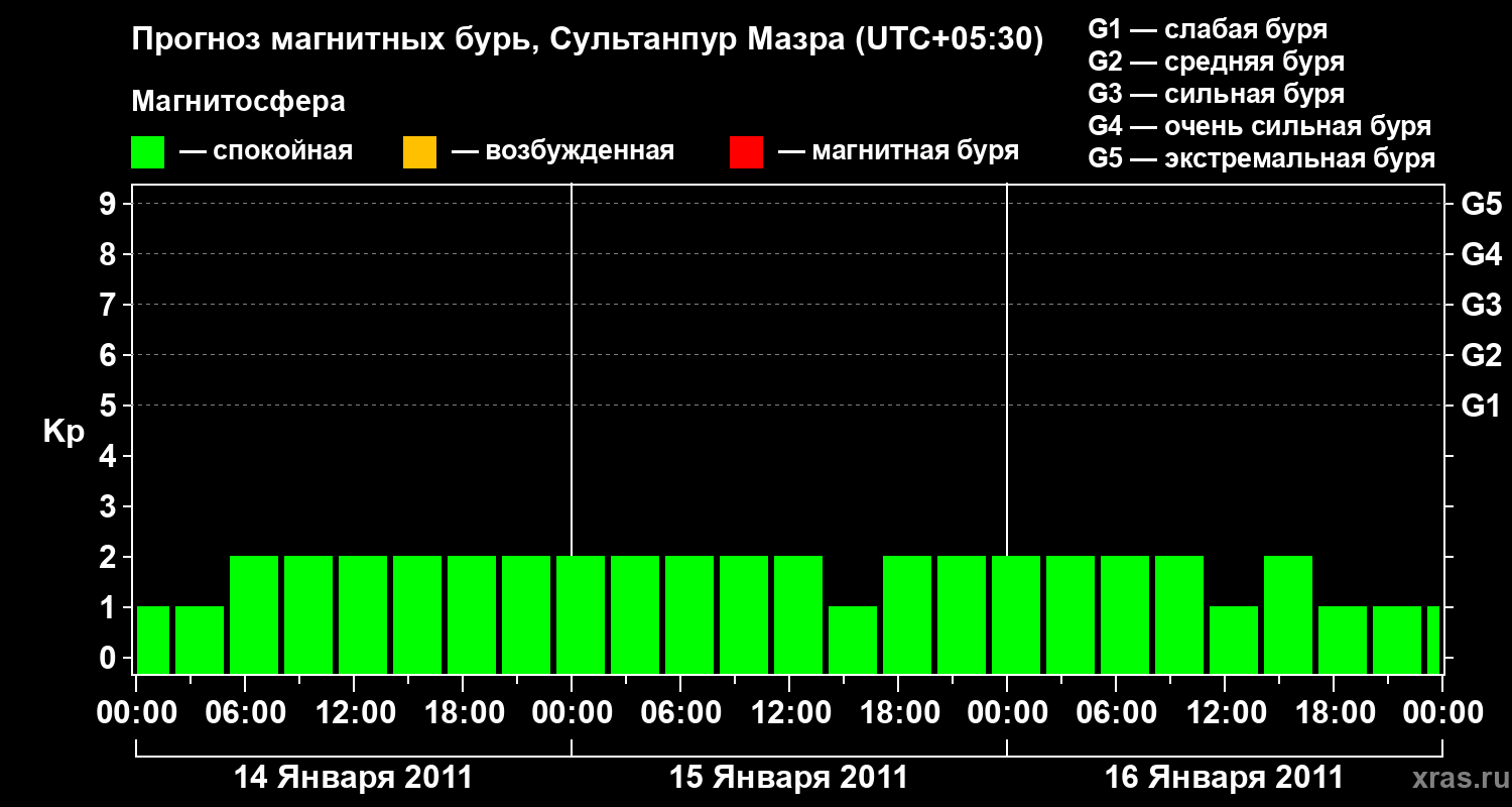 Прогноз магнитных бурь в Сультанпур Мазре — 14 января 2011 года