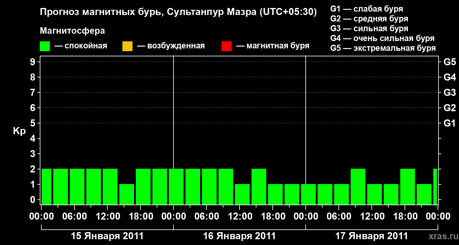 Прогноз магнитных бурь в Сультанпур Мазре — 15 января 2011 года