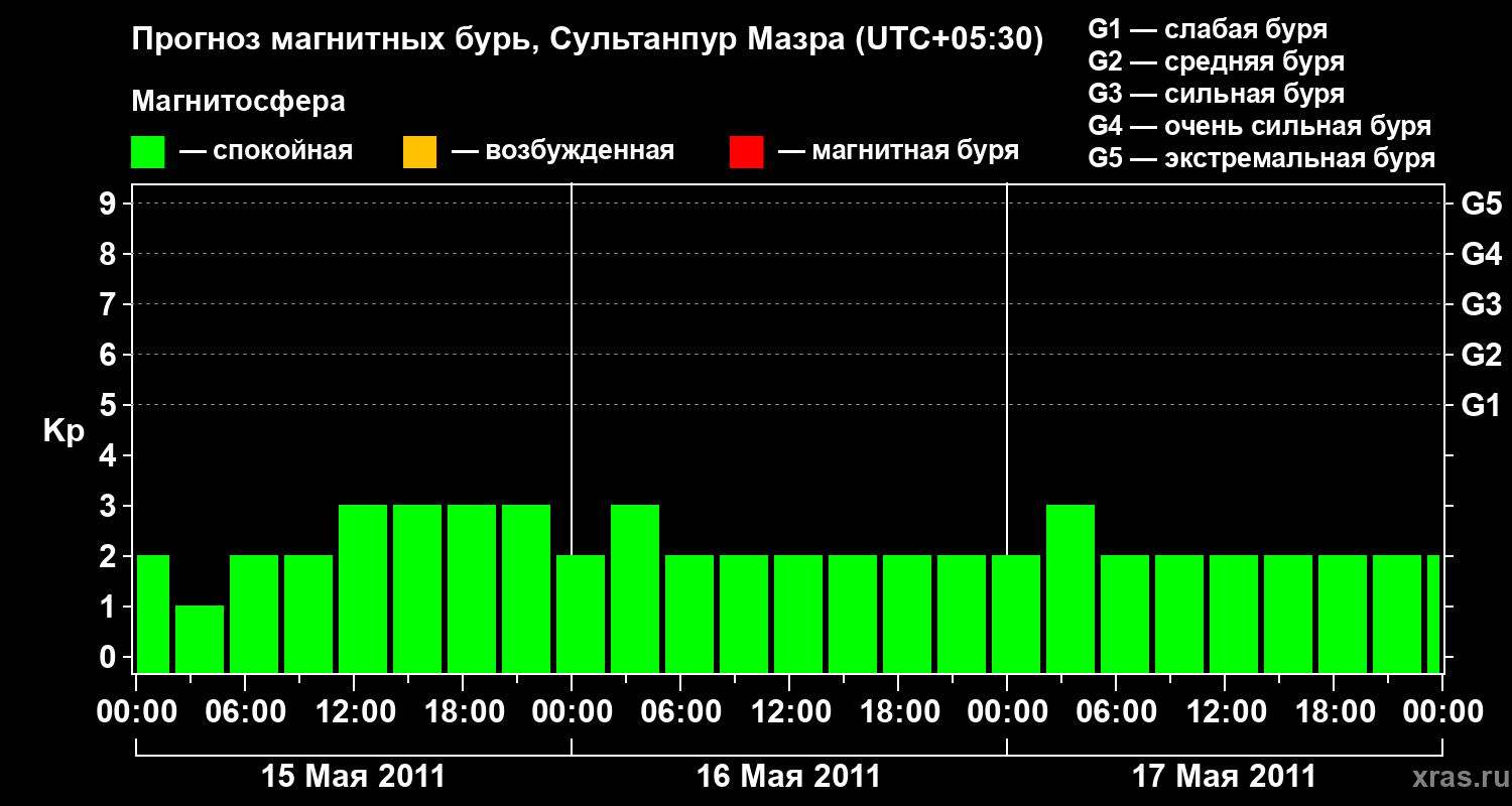 Прогноз магнитных бурь в Сультанпур Мазре — 15 мая 2011 года