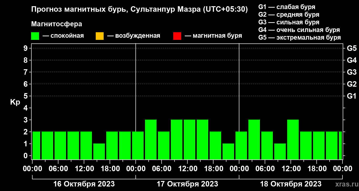 Прогноз магнитных бурь в Сультанпур Мазре на 16 октября 2023 года