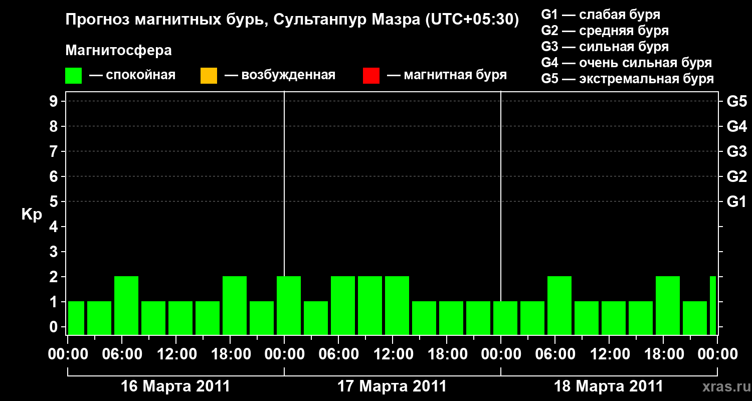 Прогноз магнитных бурь в Сультанпур Мазре — 16 марта 2011 года