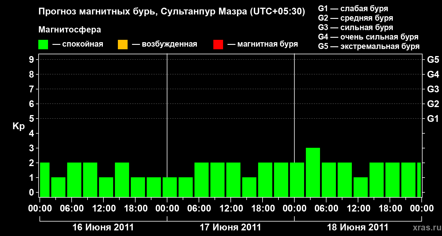 Прогноз магнитных бурь в Сультанпур Мазре — 16 июня 2011 года