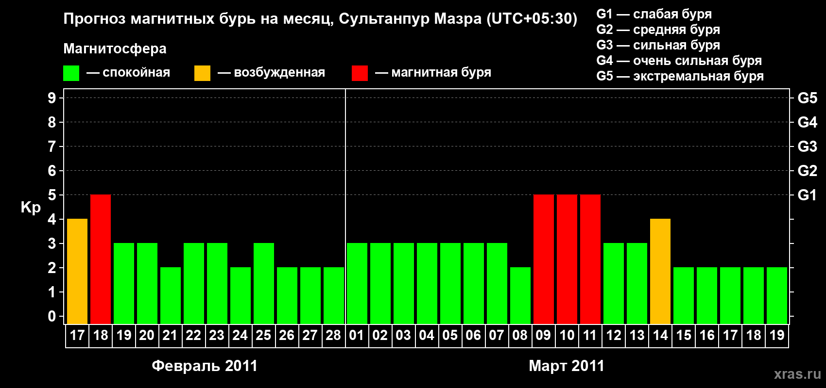 Прогноз магнитных бурь в Сультанпур Мазре — 17 февраля 2011 года
