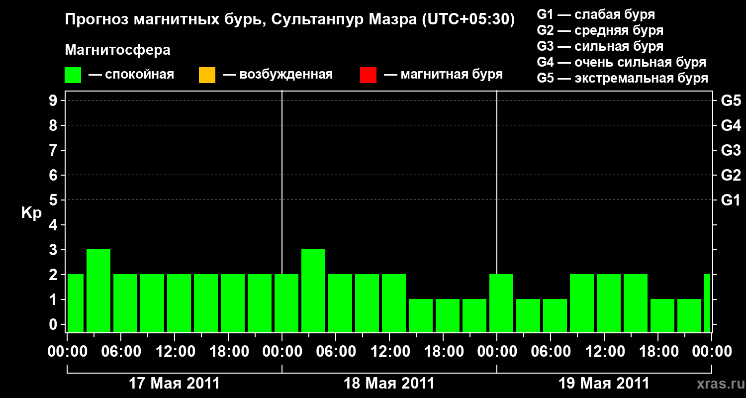 Прогноз магнитных бурь в Сультанпур Мазре — 17 мая 2011 года