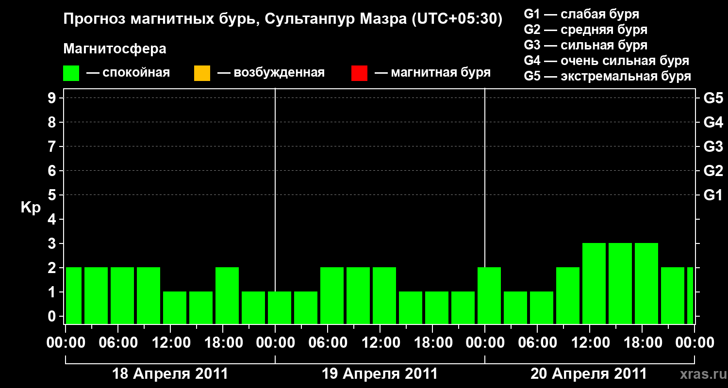 Прогноз магнитных бурь в Сультанпур Мазре — 18 апреля 2011 года