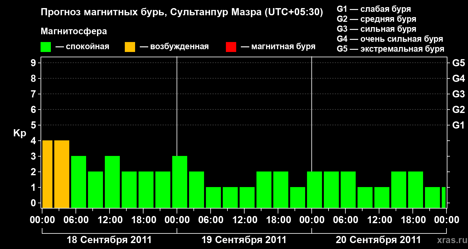 Прогноз магнитных бурь в Сультанпур Мазре — 18 сентября 2011 года