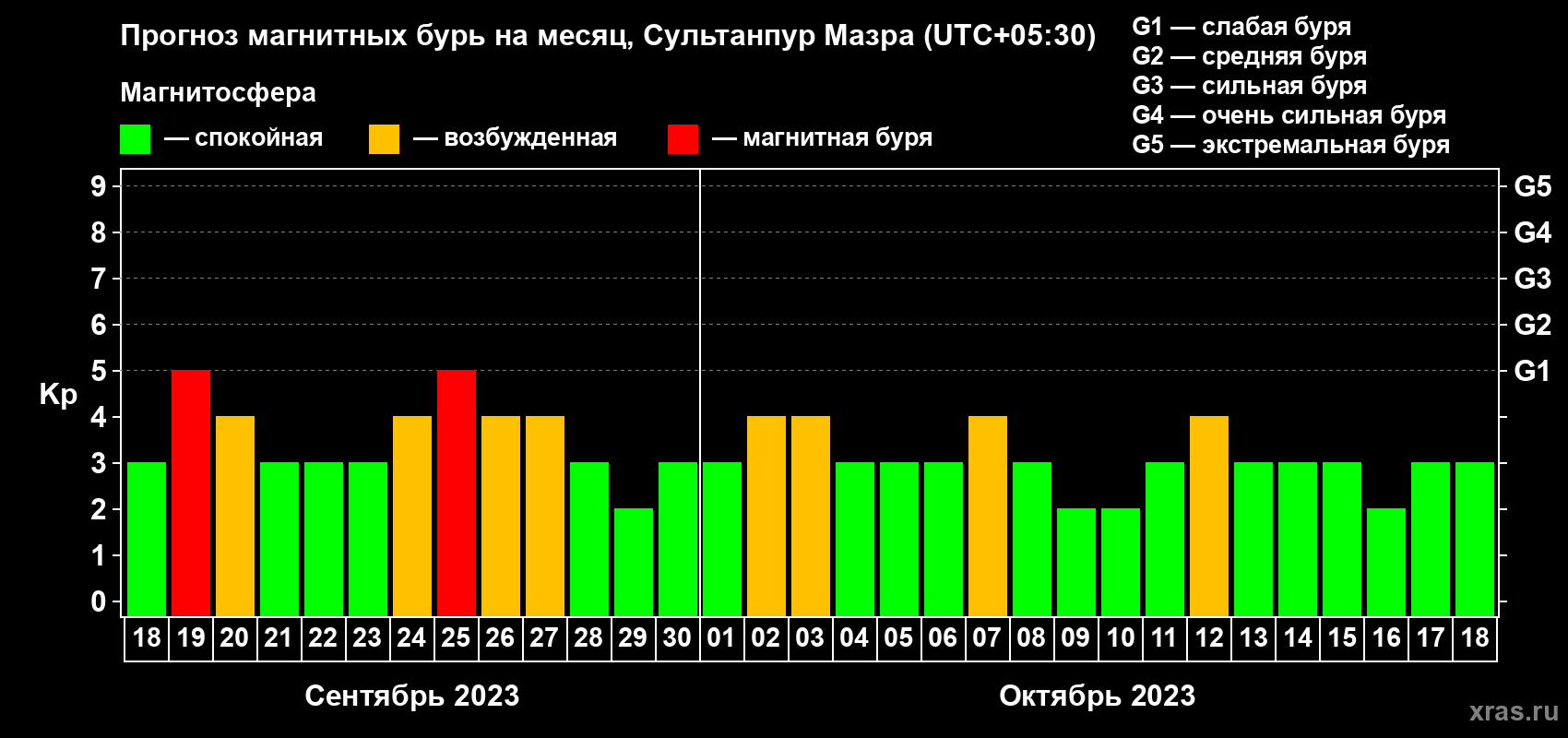 Прогноз магнитных бурь в Сультанпур Мазре на 18 сентября 2023 года