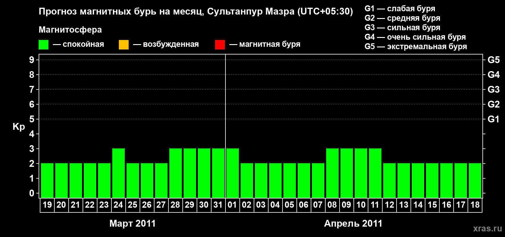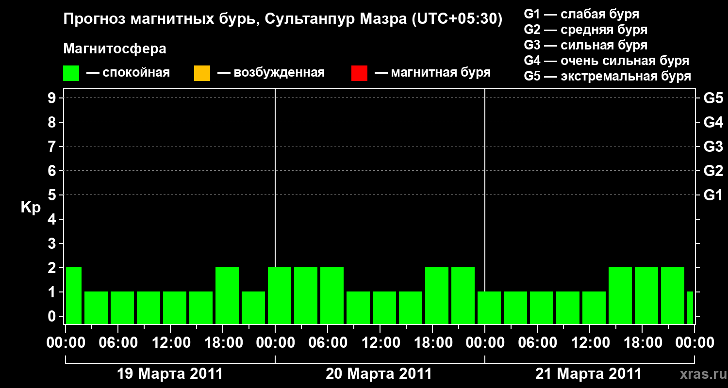 Прогноз магнитных бурь в Сультанпур Мазре — 19 марта 2011 года