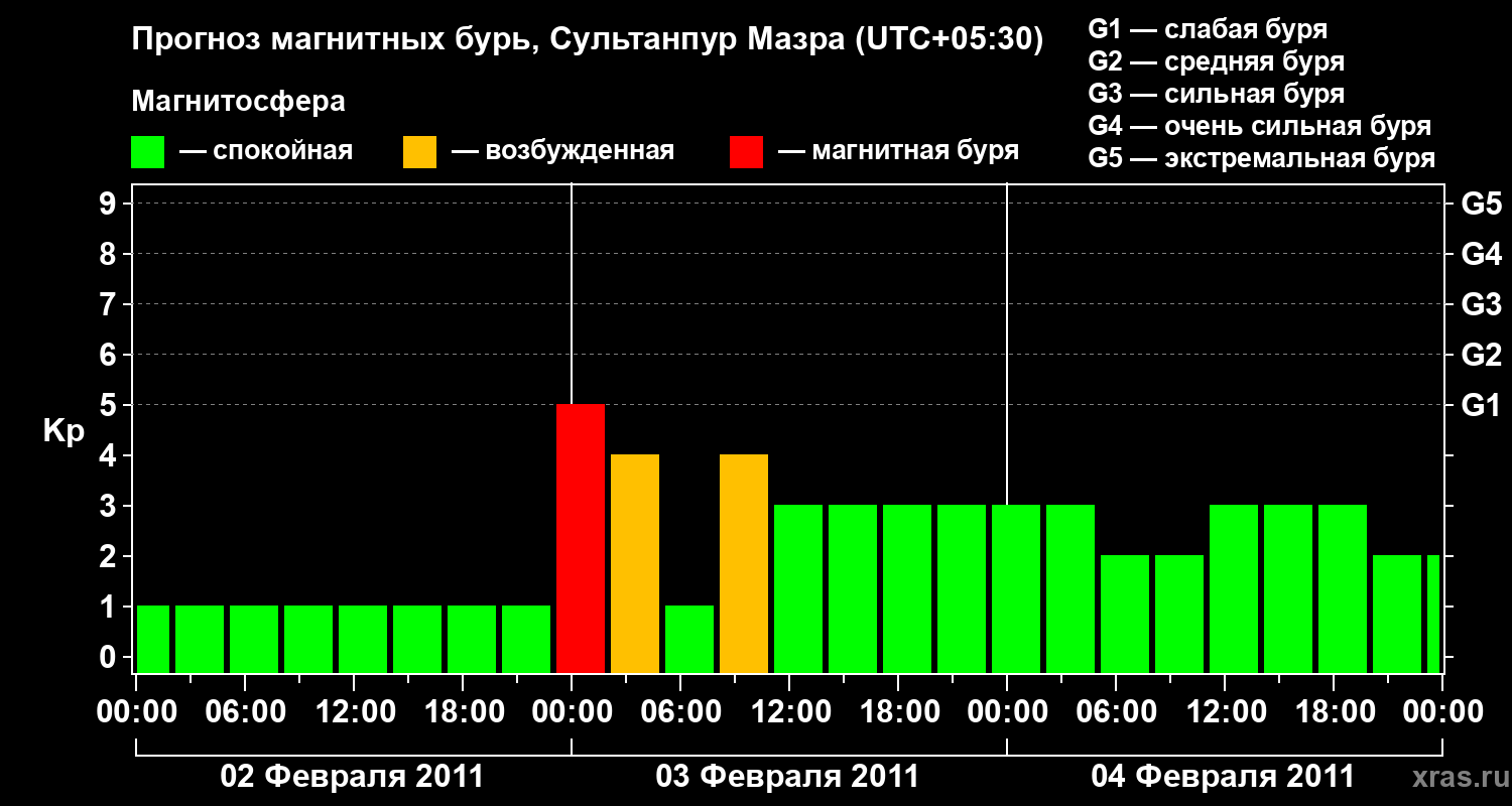 Прогноз магнитных бурь в Сультанпур Мазре — 2 февраля 2011 года