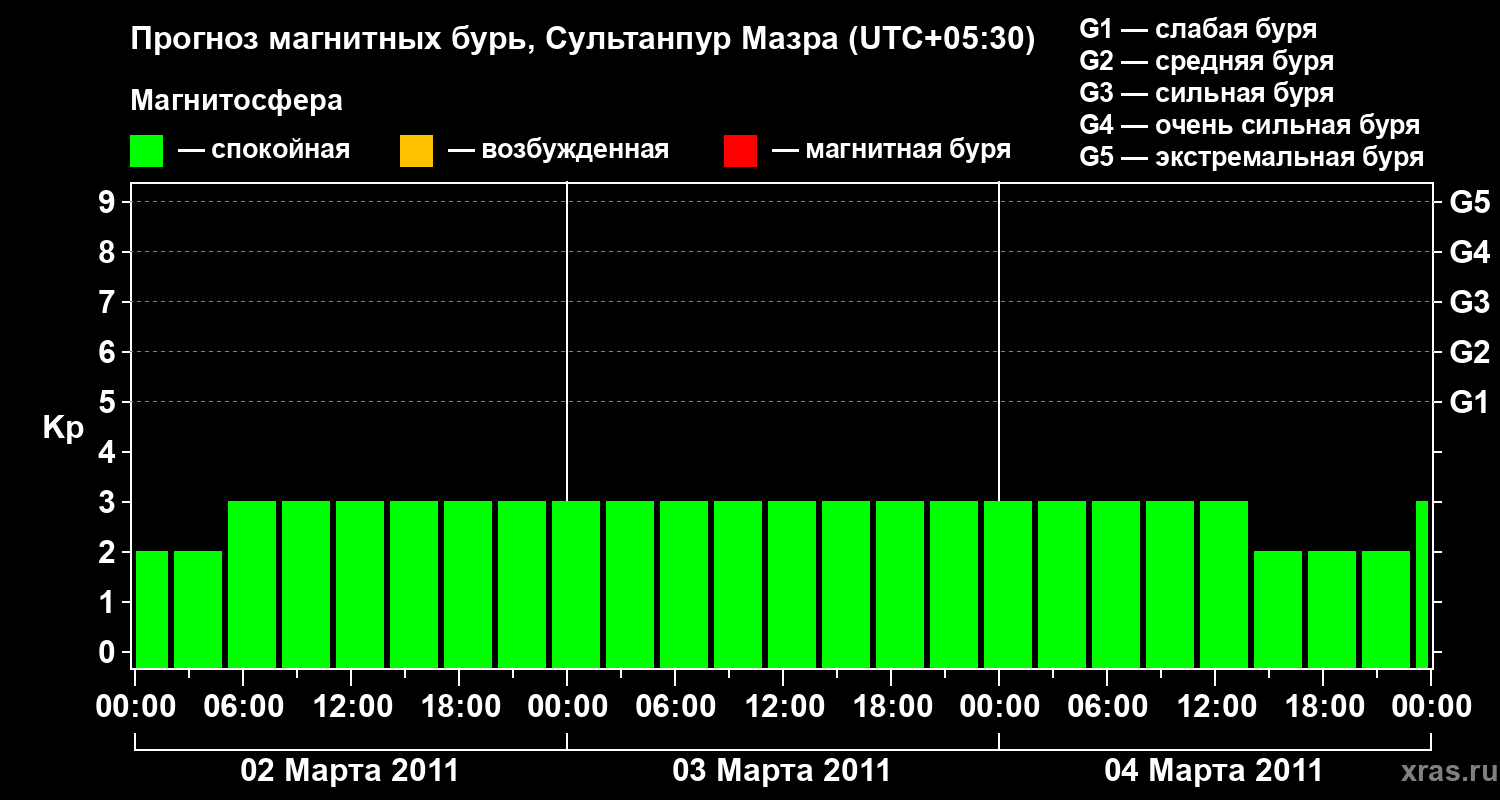 Прогноз магнитных бурь в Сультанпур Мазре — 2 марта 2011 года