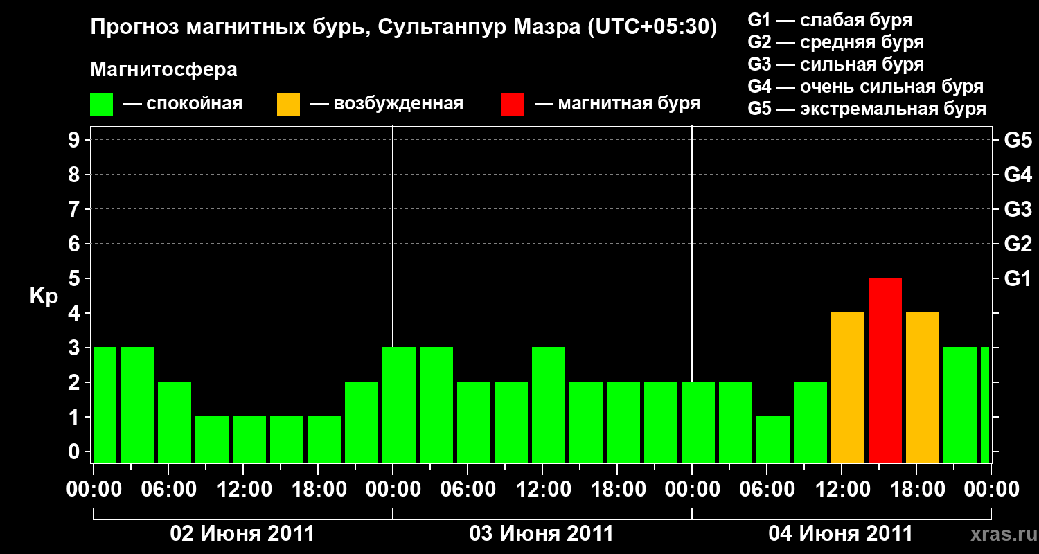 Прогноз магнитных бурь в Сультанпур Мазре — 2 июня 2011 года