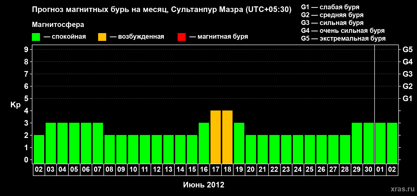 Прогноз магнитных бурь в Сультанпур Мазре — 2 июня 2012 года