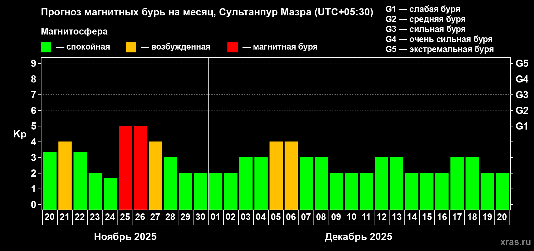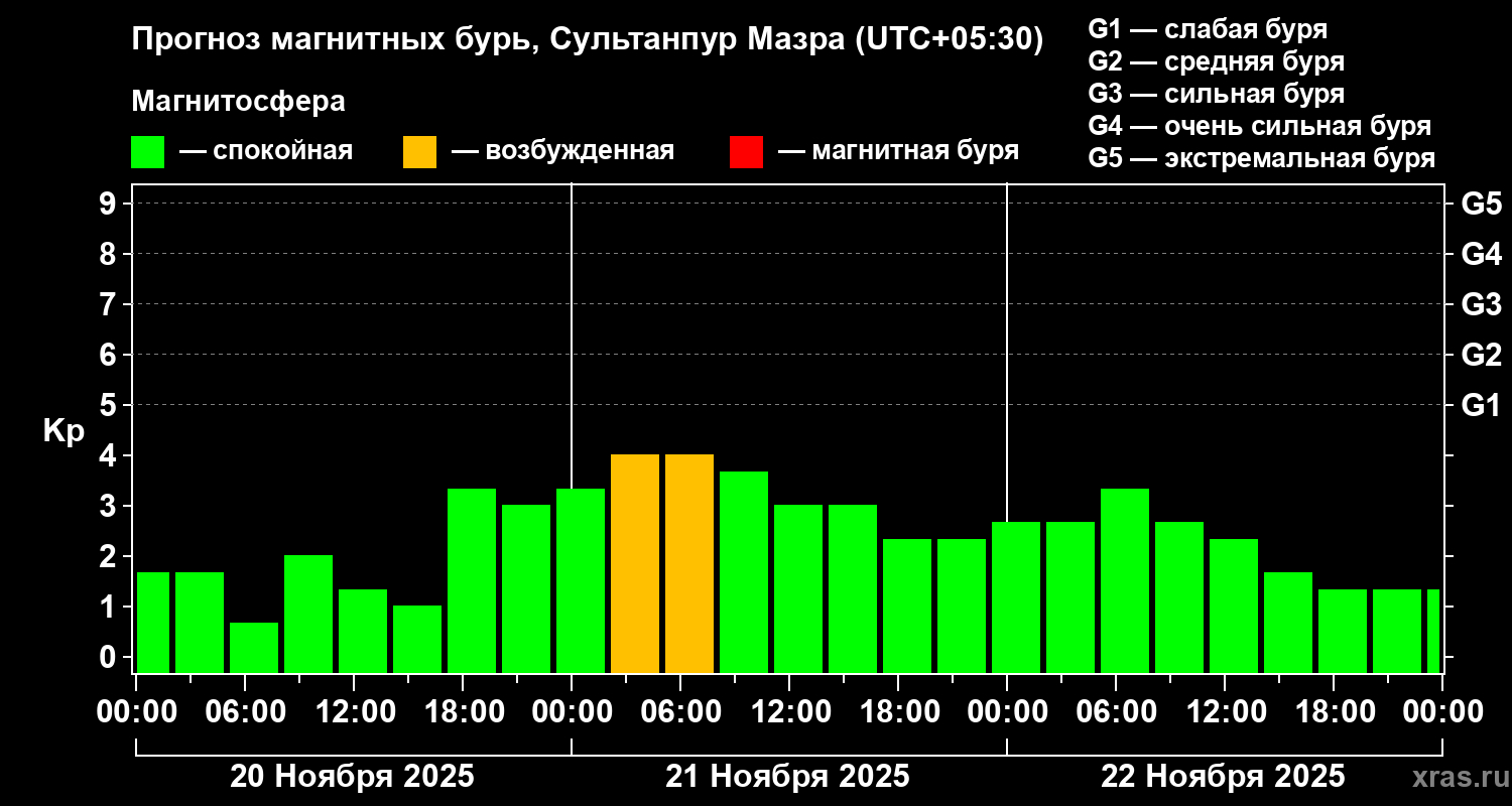 Прогноз магнитных бурь в Сультанпур Мазре — 20 ноября 2025 года