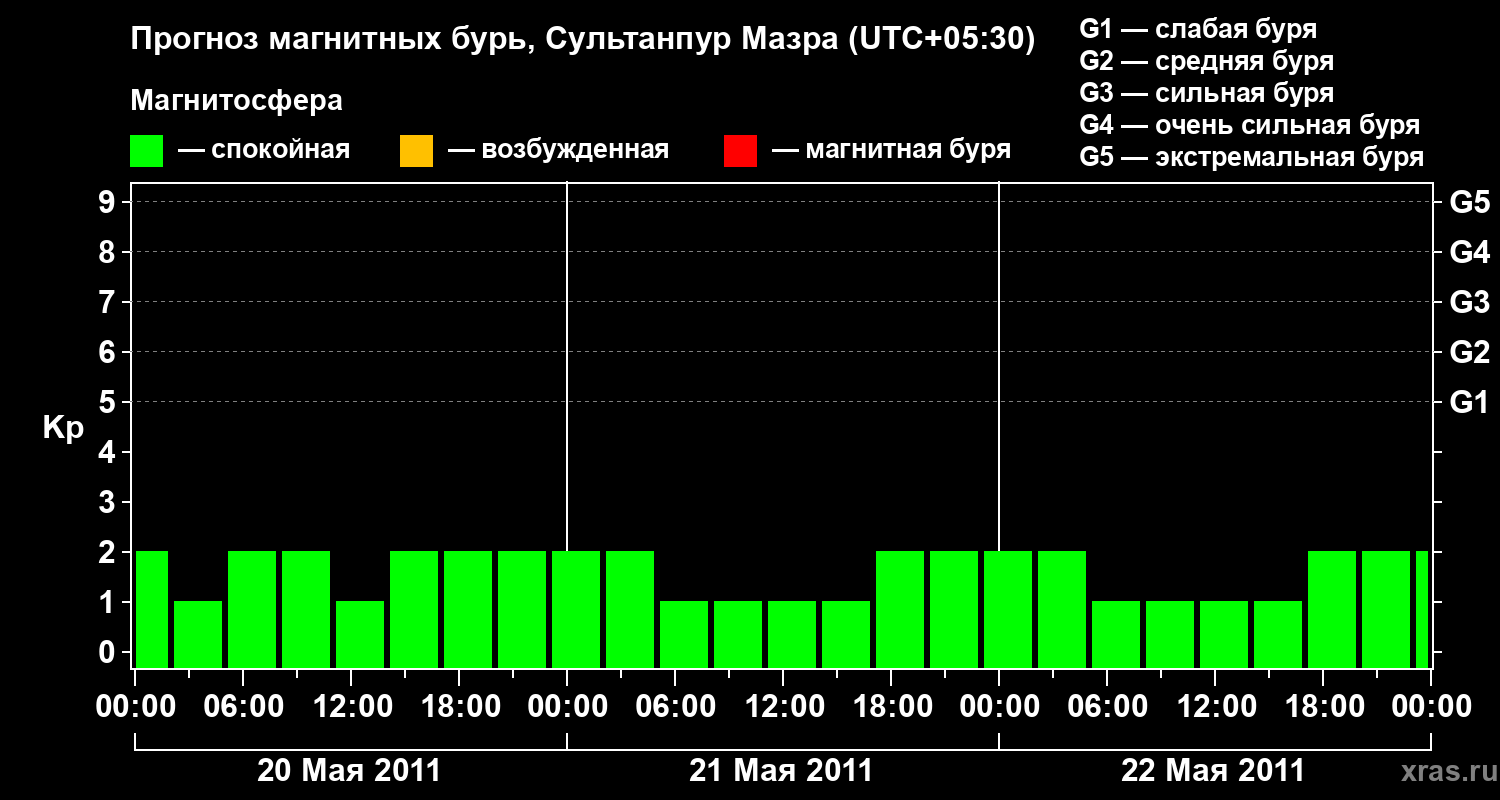 Прогноз магнитных бурь в Сультанпур Мазре — 20 мая 2011 года