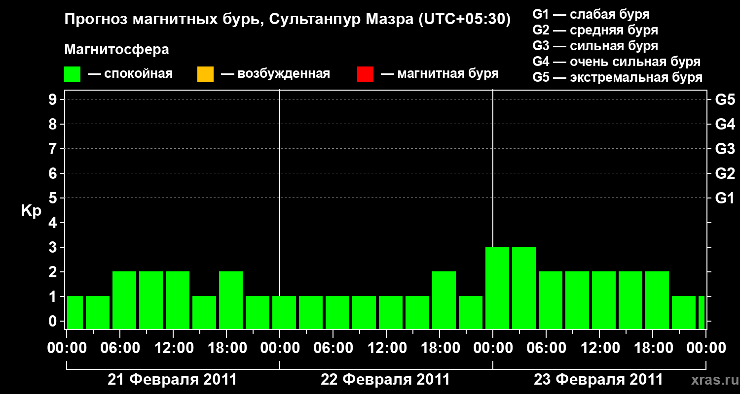 Прогноз магнитных бурь в Сультанпур Мазре — 21 февраля 2011 года
