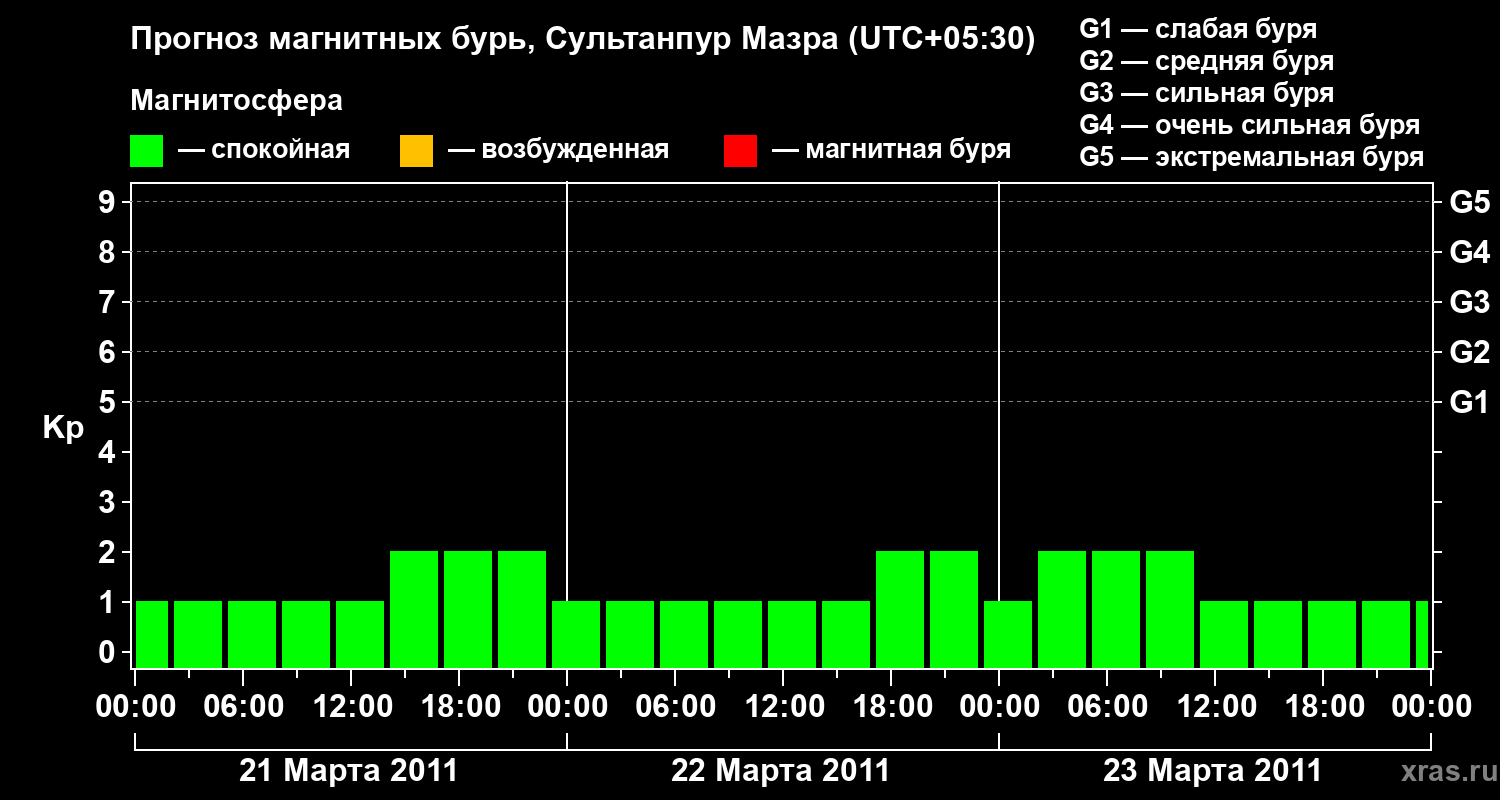Прогноз магнитных бурь в Сультанпур Мазре — 21 марта 2011 года