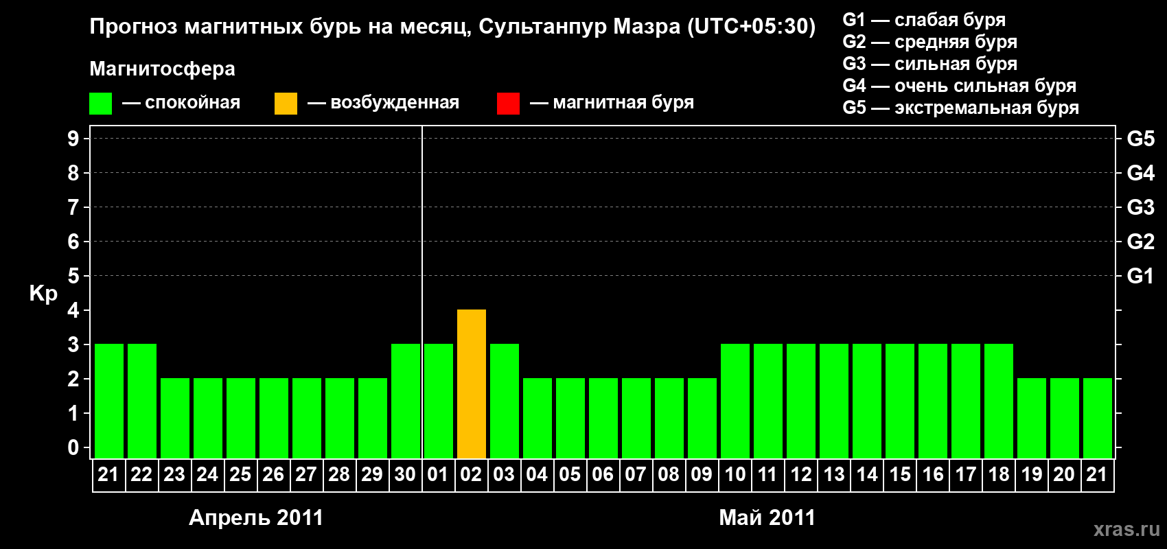 Прогноз магнитных бурь в Сультанпур Мазре — 21 апреля 2011 года