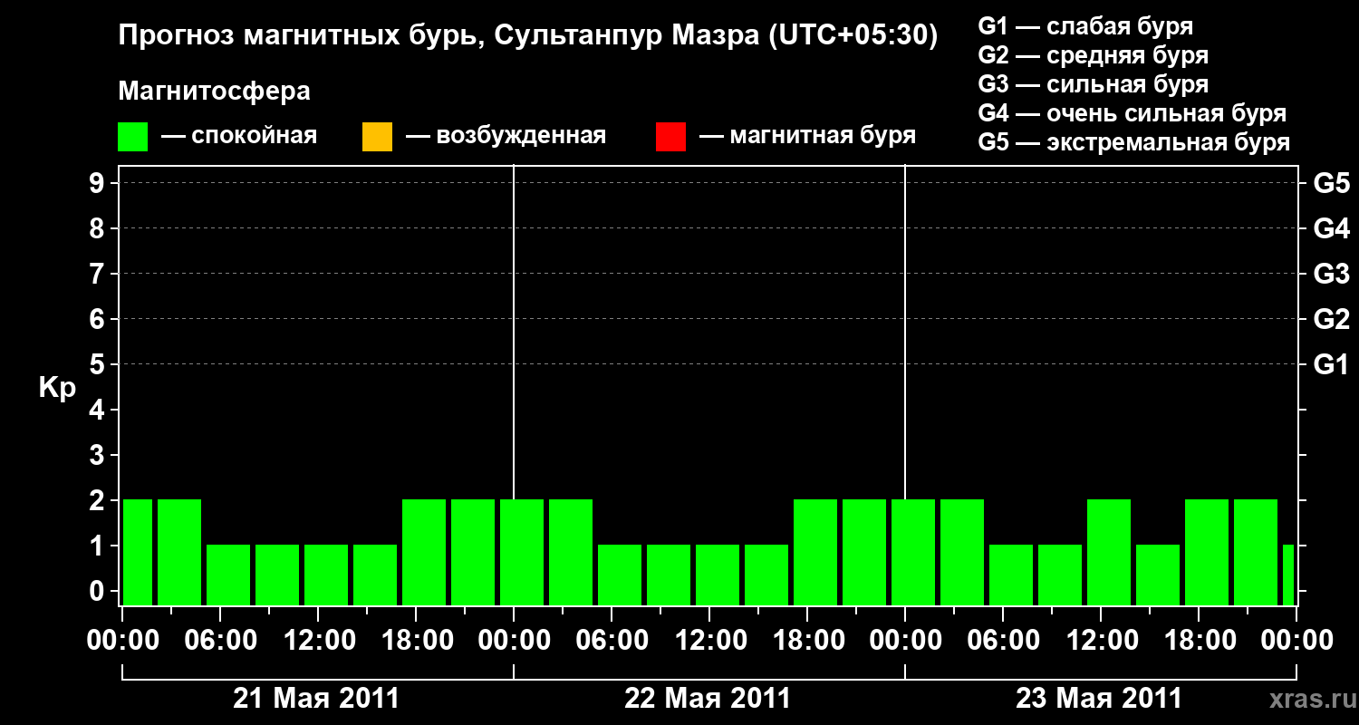 Прогноз магнитных бурь в Сультанпур Мазре — 21 мая 2011 года