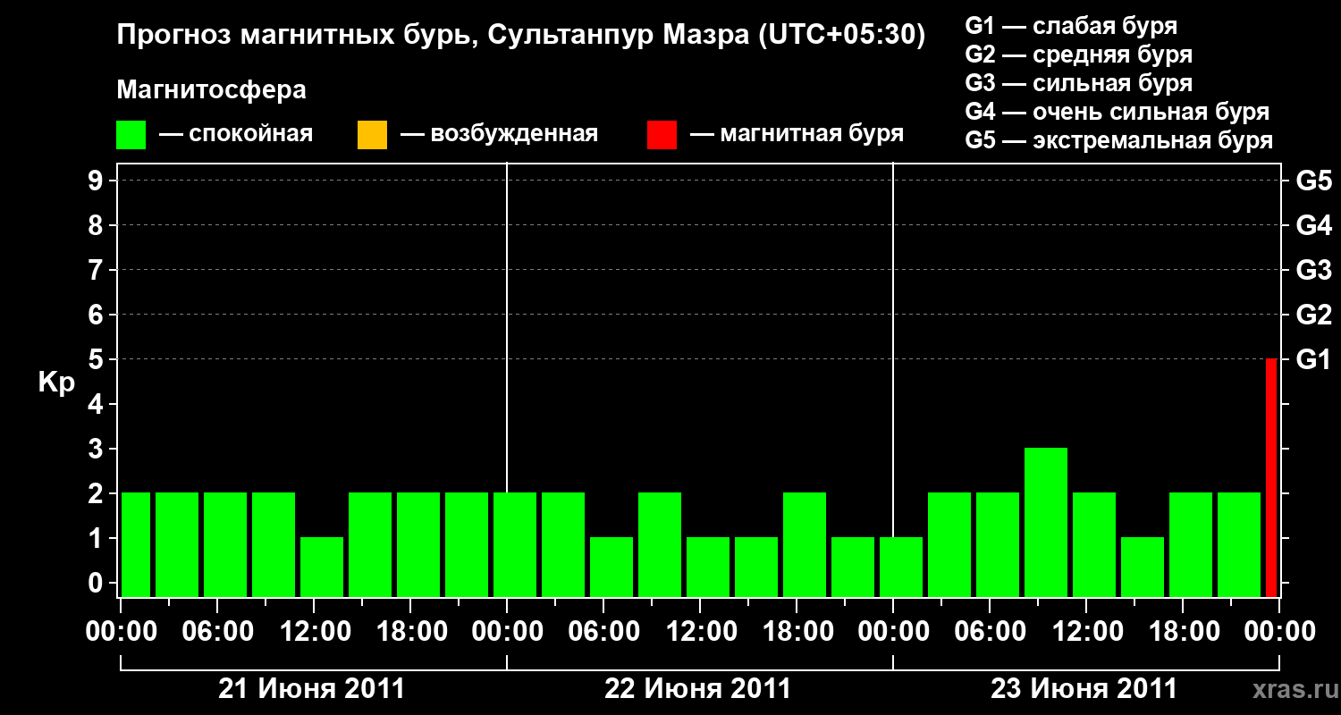 Прогноз магнитных бурь в Сультанпур Мазре — 21 июня 2011 года