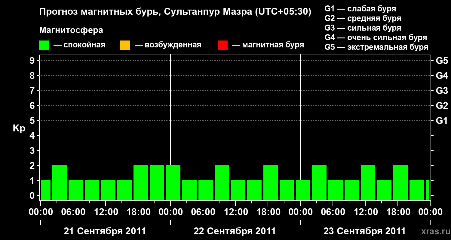 Прогноз магнитных бурь в Сультанпур Мазре — 21 сентября 2011 года