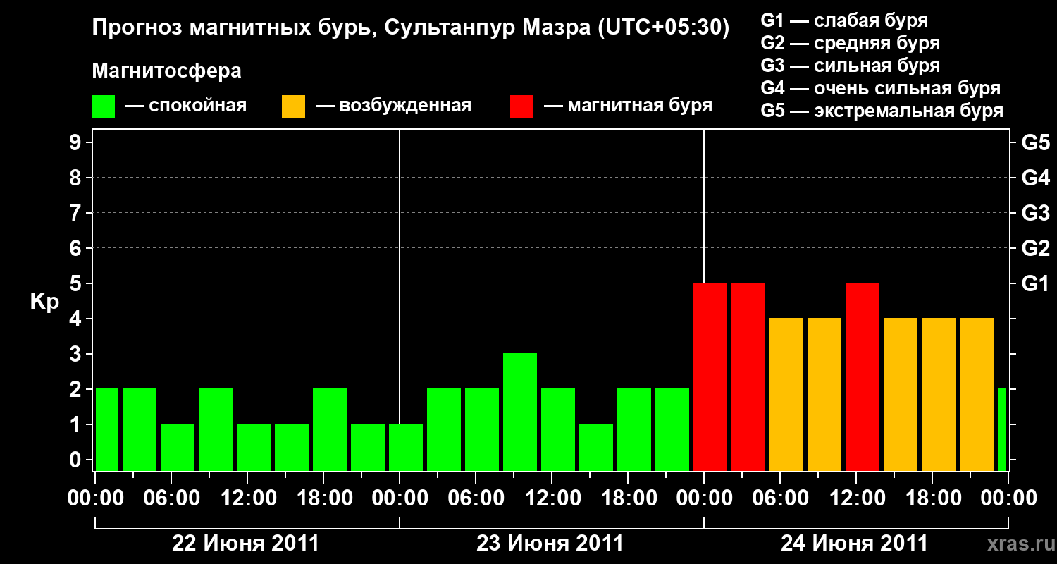Прогноз магнитных бурь в Сультанпур Мазре — 22 июня 2011 года