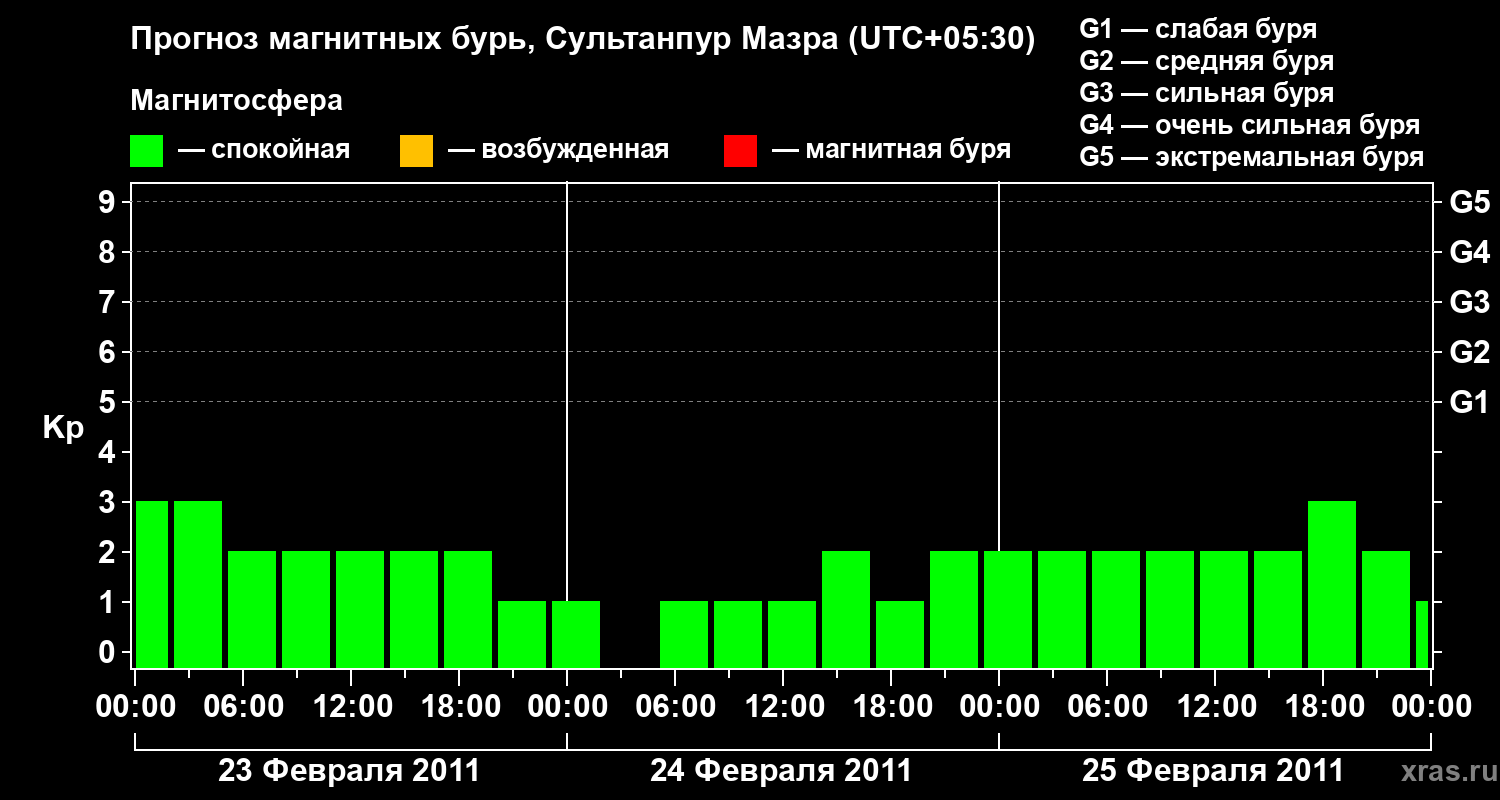 Прогноз магнитных бурь в Сультанпур Мазре — 23 февраля 2011 года