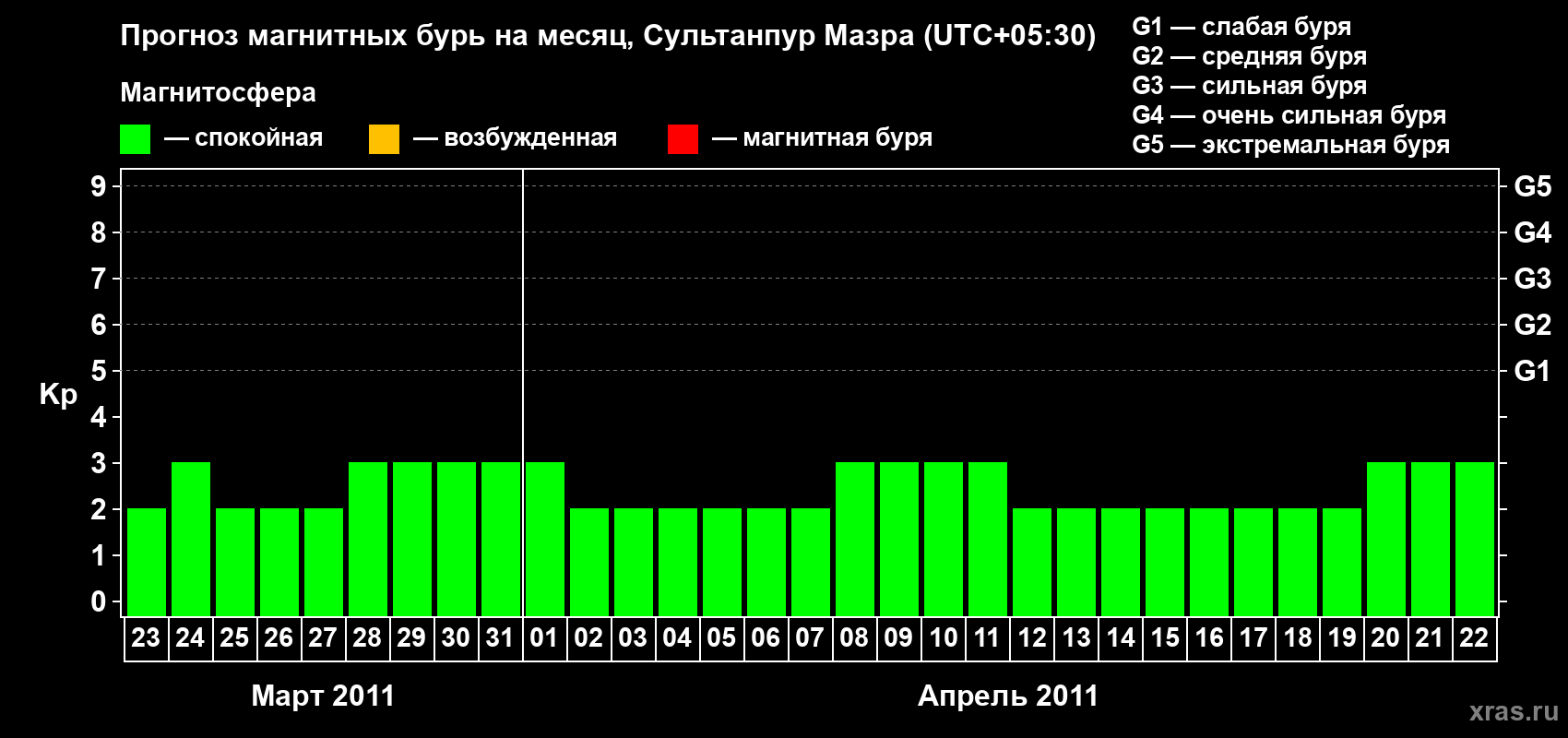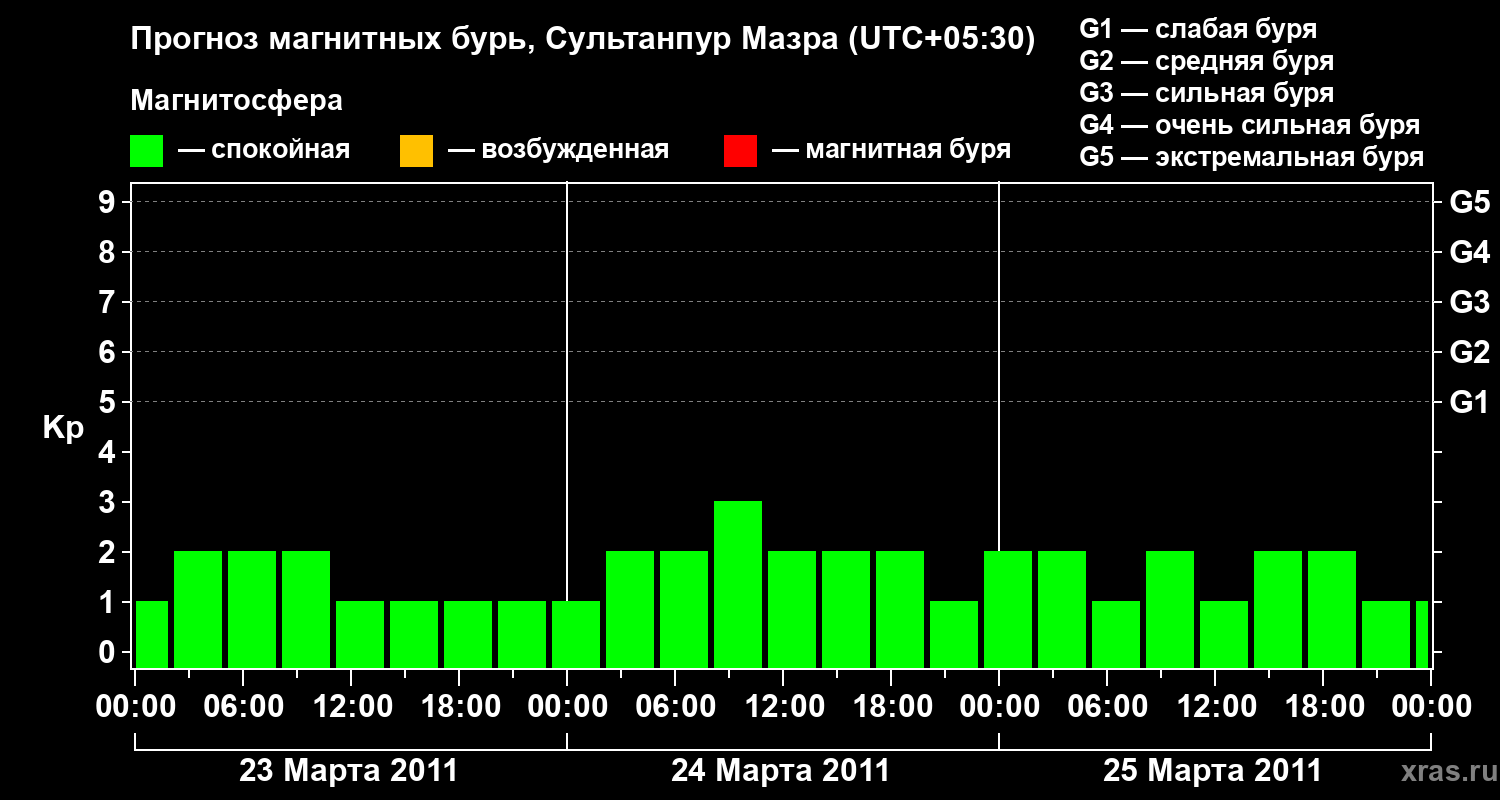 Прогноз магнитных бурь в Сультанпур Мазре — 23 марта 2011 года
