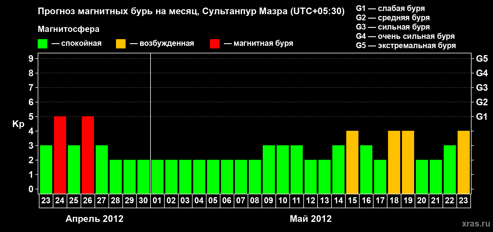 Прогноз магнитных бурь в Сультанпур Мазре — 23 апреля 2012 года