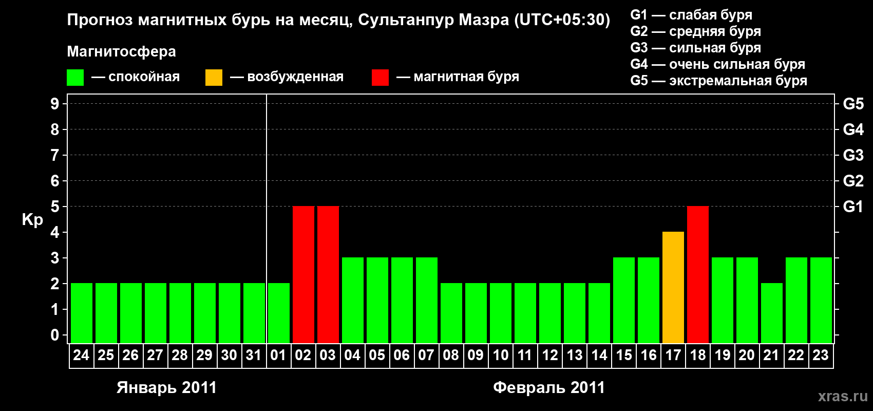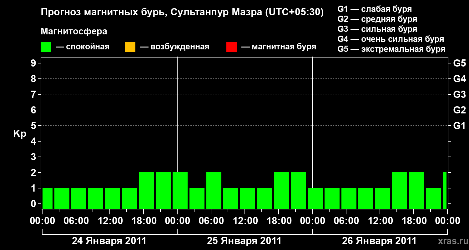Прогноз магнитных бурь в Сультанпур Мазре — 24 января 2011 года