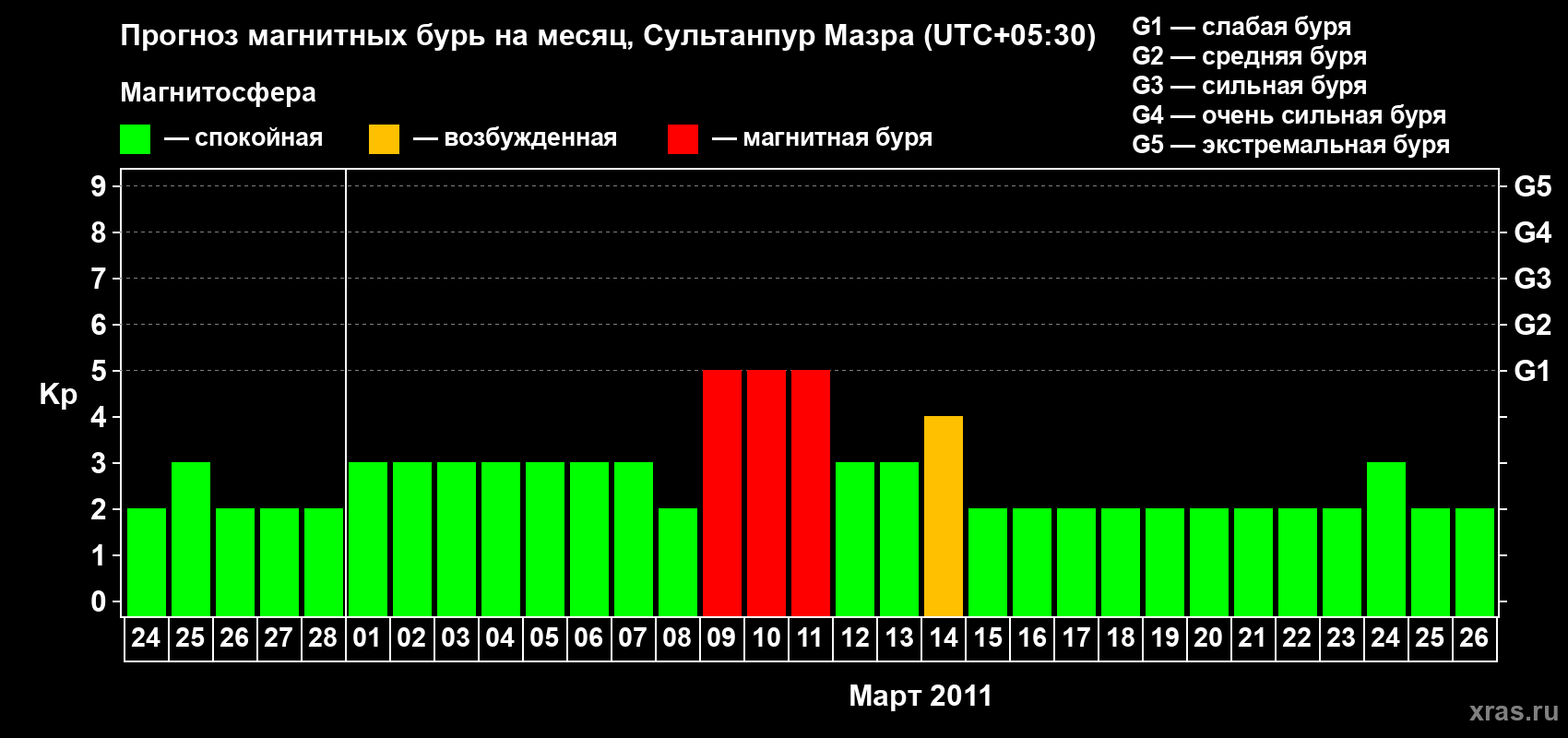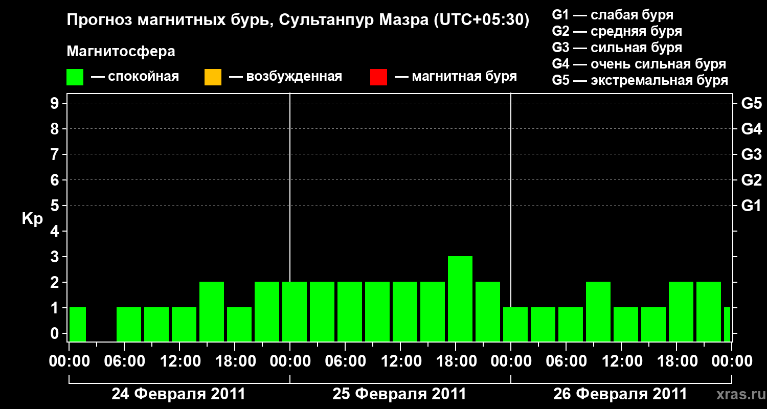 Прогноз магнитных бурь в Сультанпур Мазре — 24 февраля 2011 года